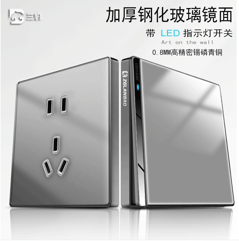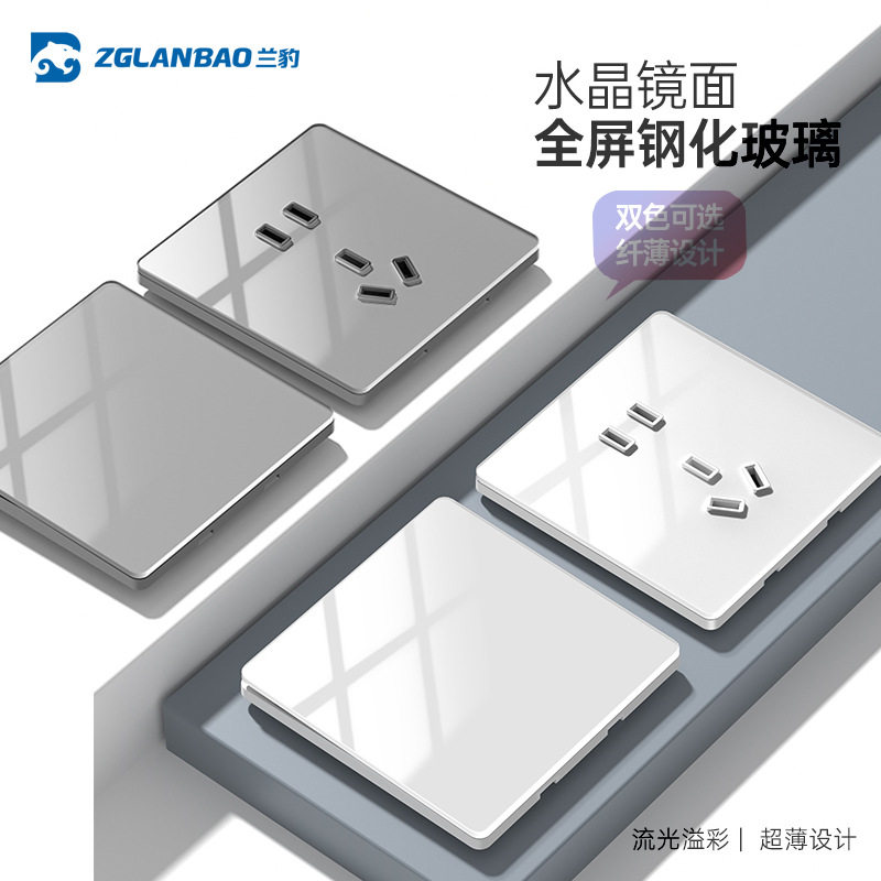 卸売り86二三差五穴超薄強化ガラス亮面スイッチコンセント灰色四穴壁コンセントパネル