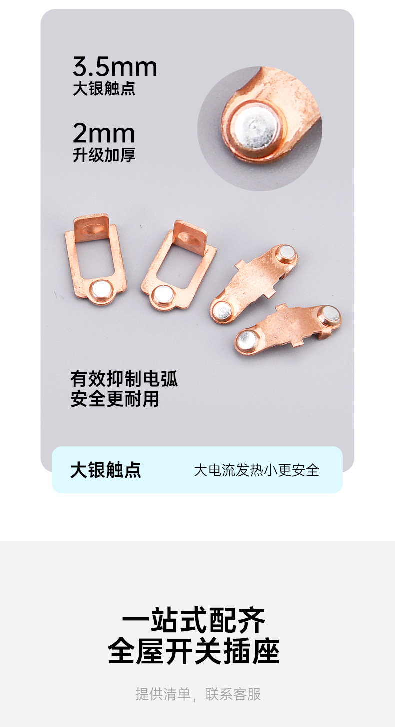 86型暗装白色一開単制御スイッチパネル銀点単開単連壁スイッチソケット卸売り