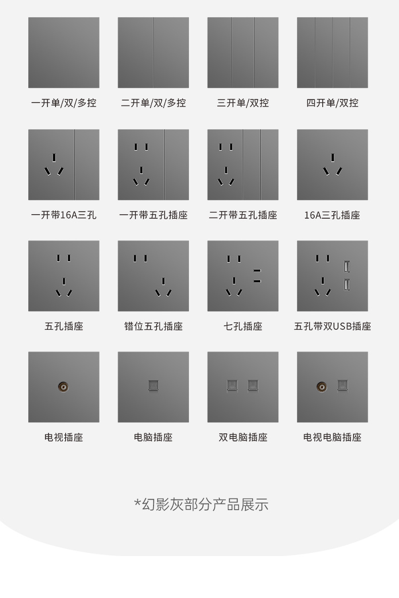 超薄二三差壁スイッチソケット10A暗装グレー五穴ボード一人usb家具パネルメーカー
