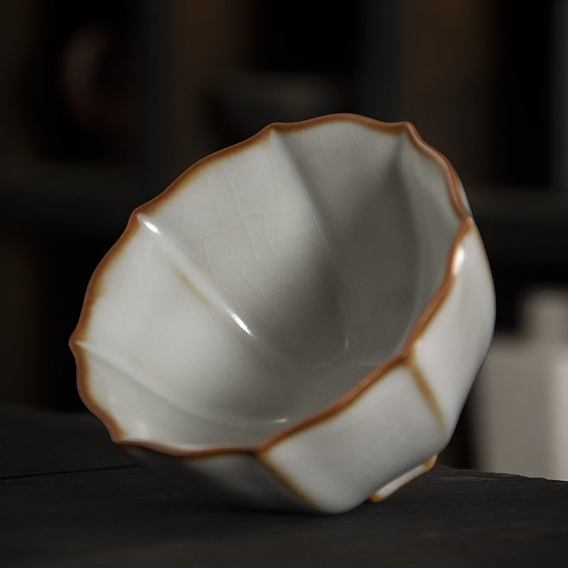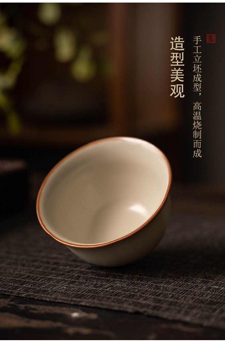 斗笠杯米黄汝窯主人杯単杯家庭用可養茶杯陶磁器茶道具工夫品茗杯聚香杯