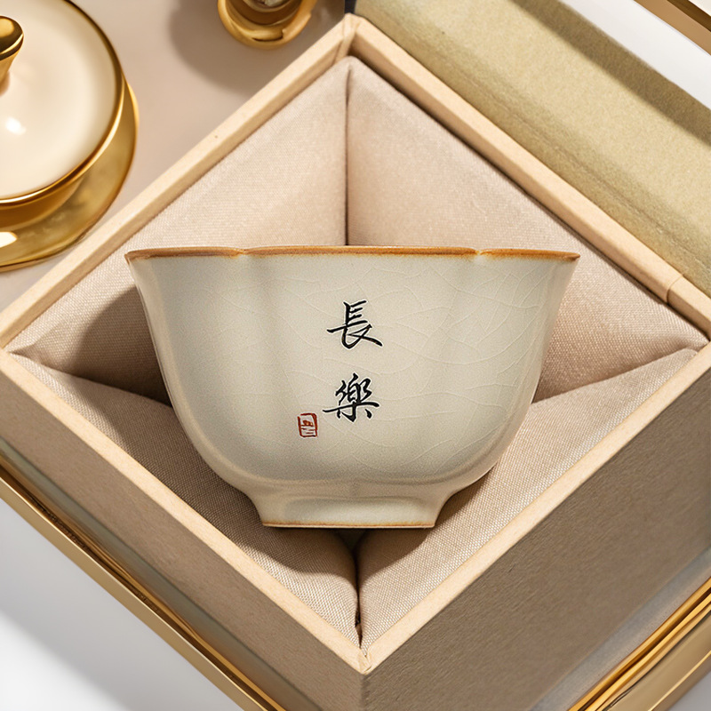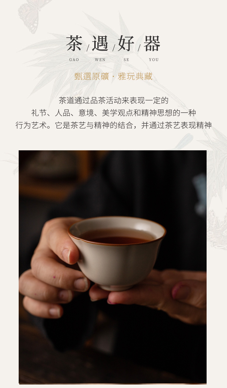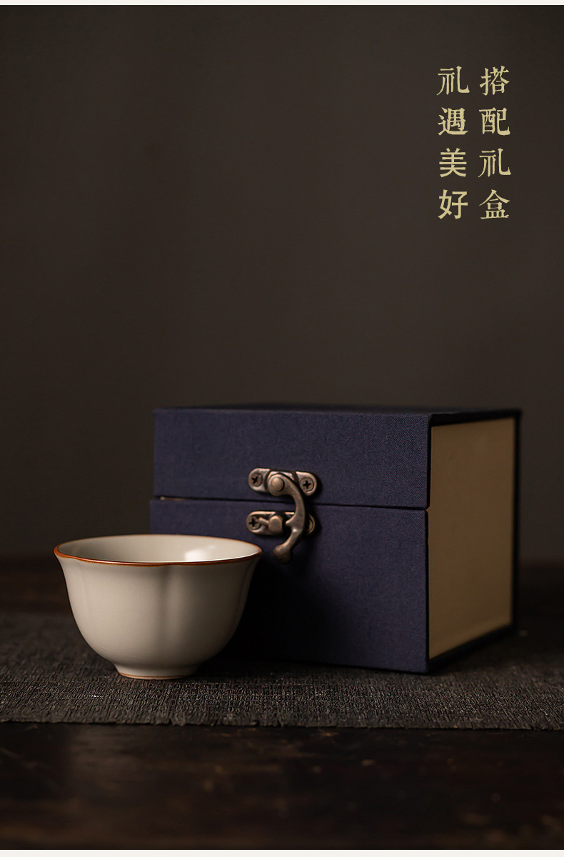 米黄汝窑茶杯高档个人专用主人杯个人杯单杯陶瓷品茗杯茶盏礼盒