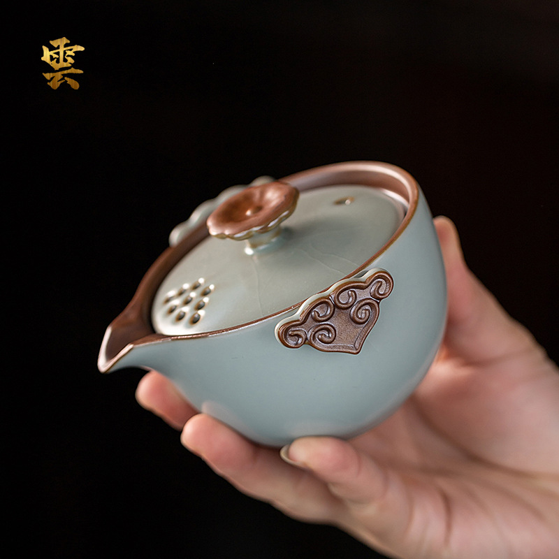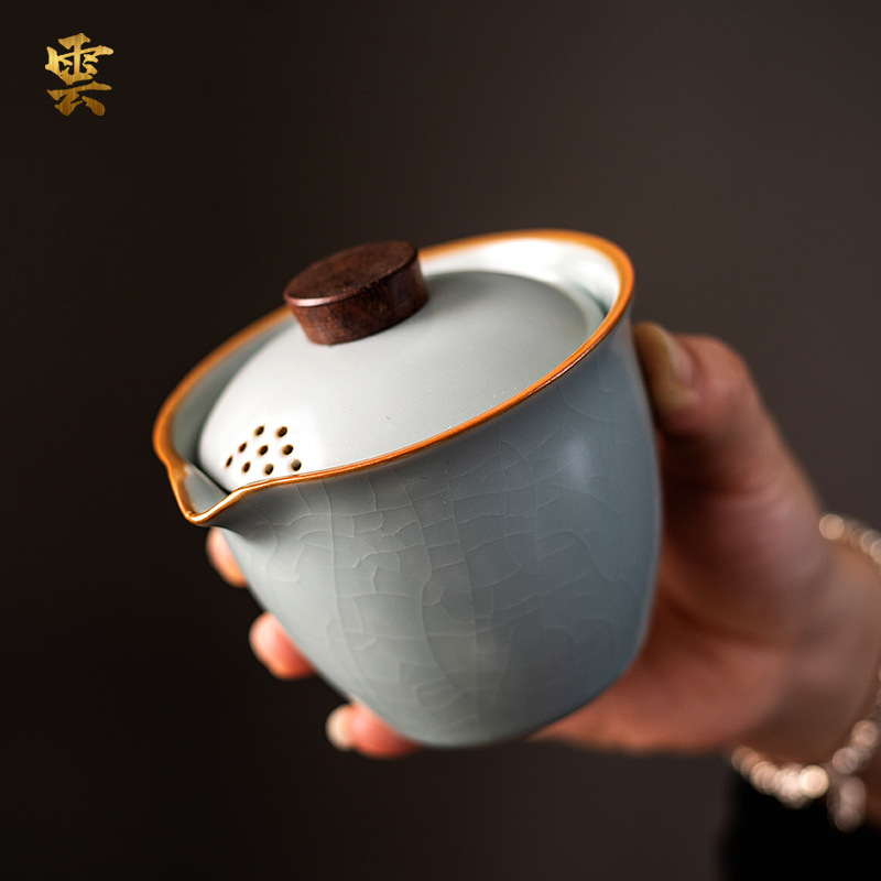 天青汝窯手掴み壺単壺防熱蓋碗茶杯単高級茶碗陶磁器家庭用工夫茶器