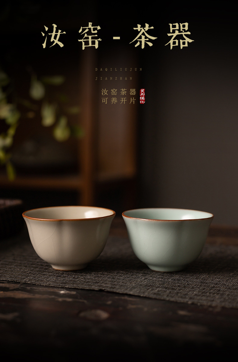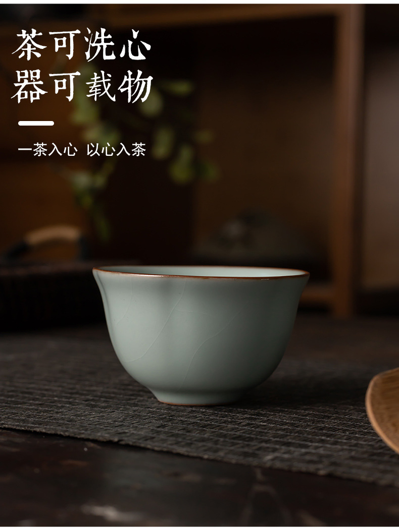天青汝窯茶杯主人杯単杯開片品茗コップカンフー茶杯陶磁器茶器レトロ茶碗