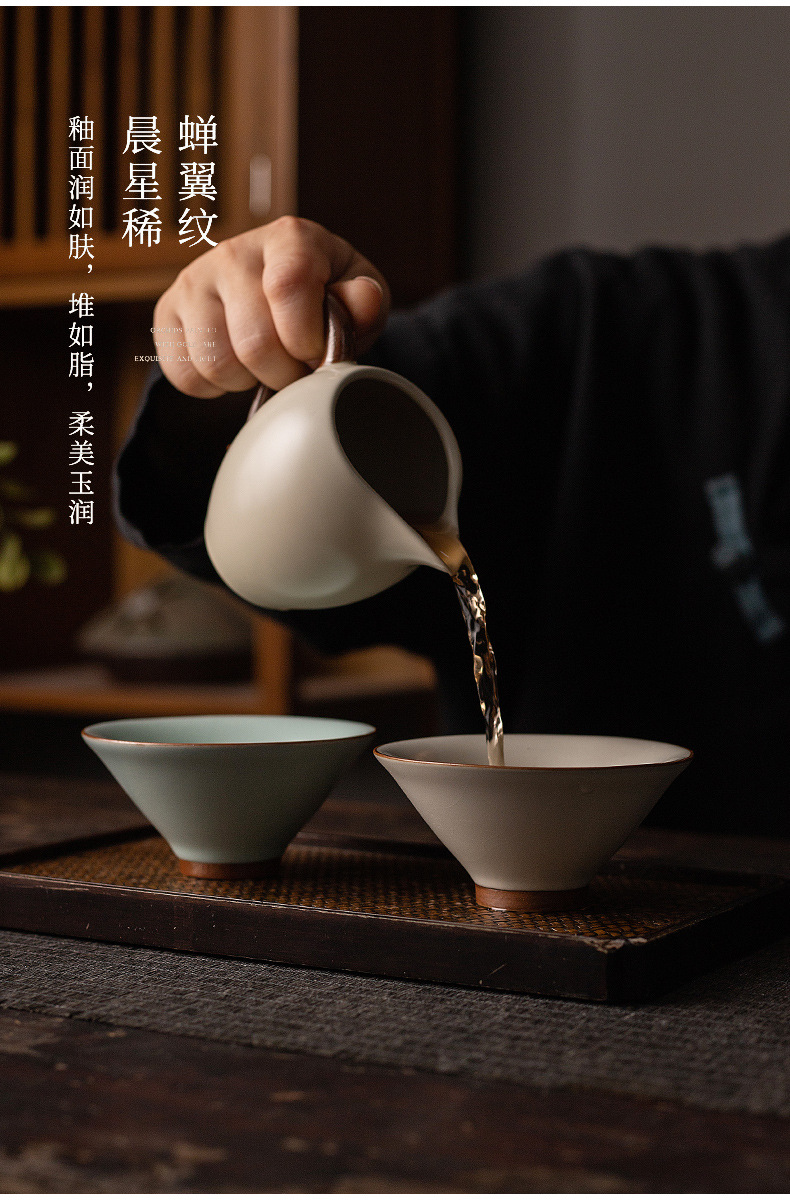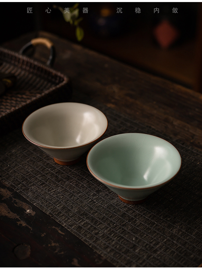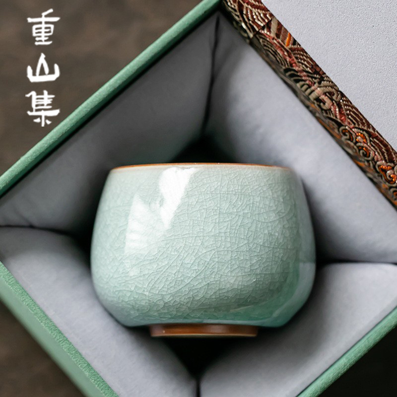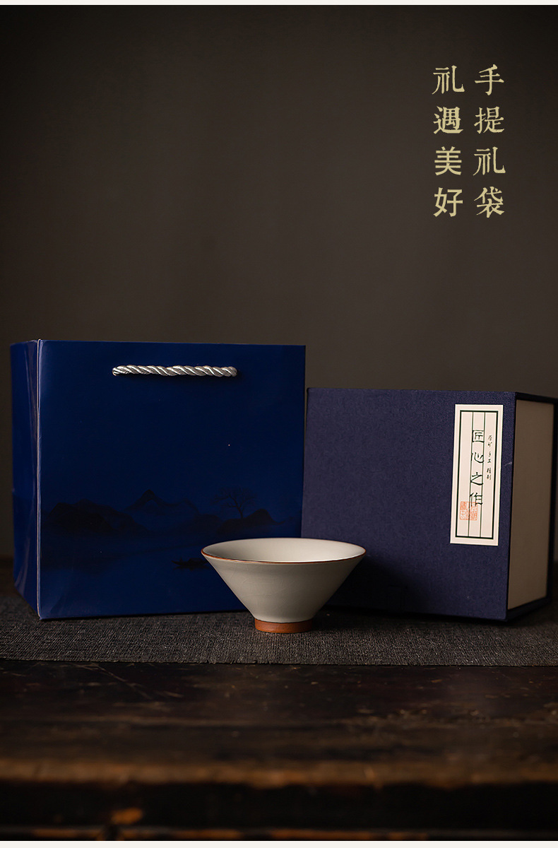 汝窯氷片釉薬主人杯家庭用客杯カンフー杯陶磁器単杯お茶杯高級ギフトボックス品茗杯
