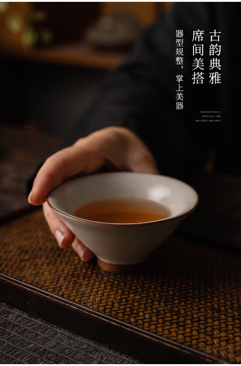 斗笠杯米黄汝窯主人杯単杯家庭用可養茶杯陶磁器茶道具工夫品茗杯聚香杯