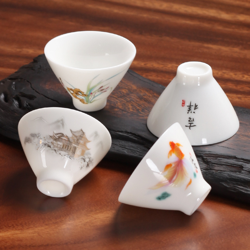 羊脂玉瓷斗笠杯家用陶瓷功夫茶具白瓷喝茶小茶杯单杯品茗杯小茶盅