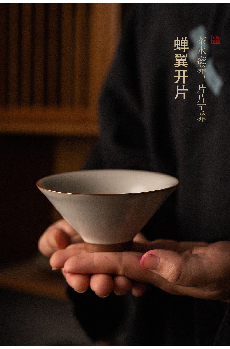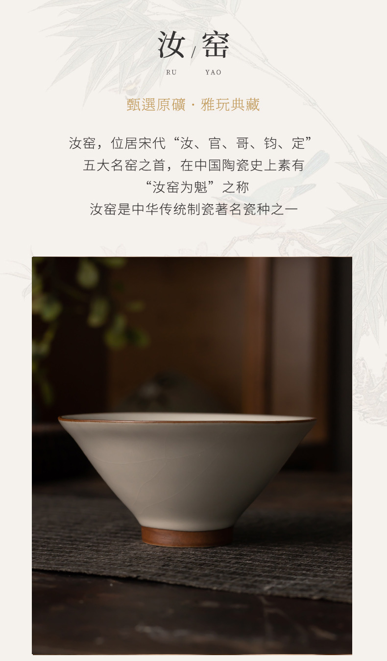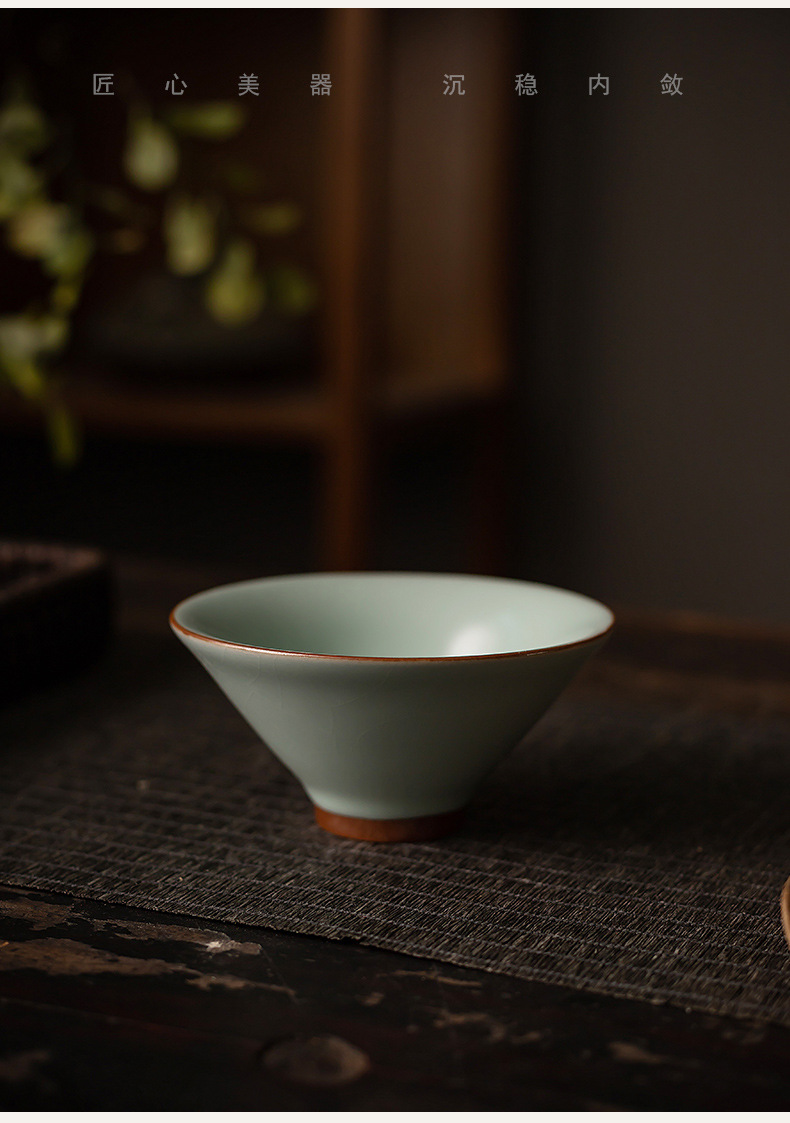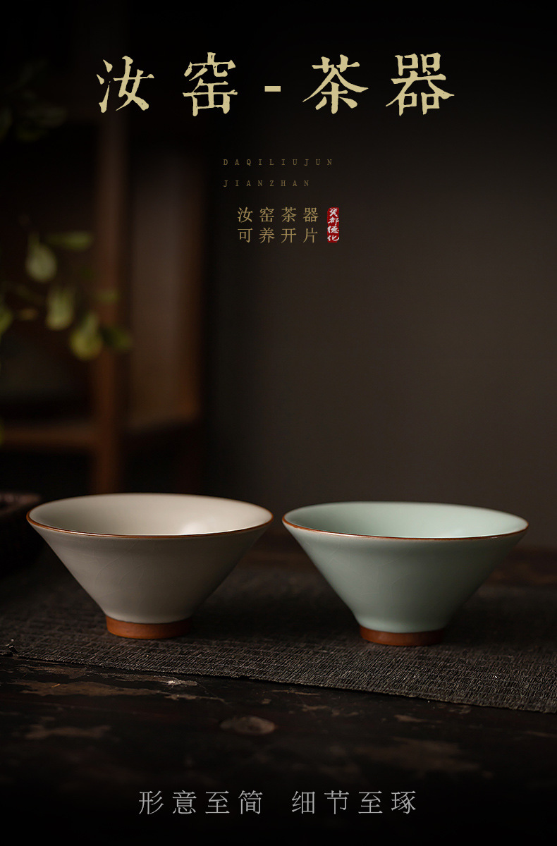 汝窯茶杯斗笠杯一杯の工夫茶拝神氷裂釉開片可養陶磁器茶杯汝磁器主人杯