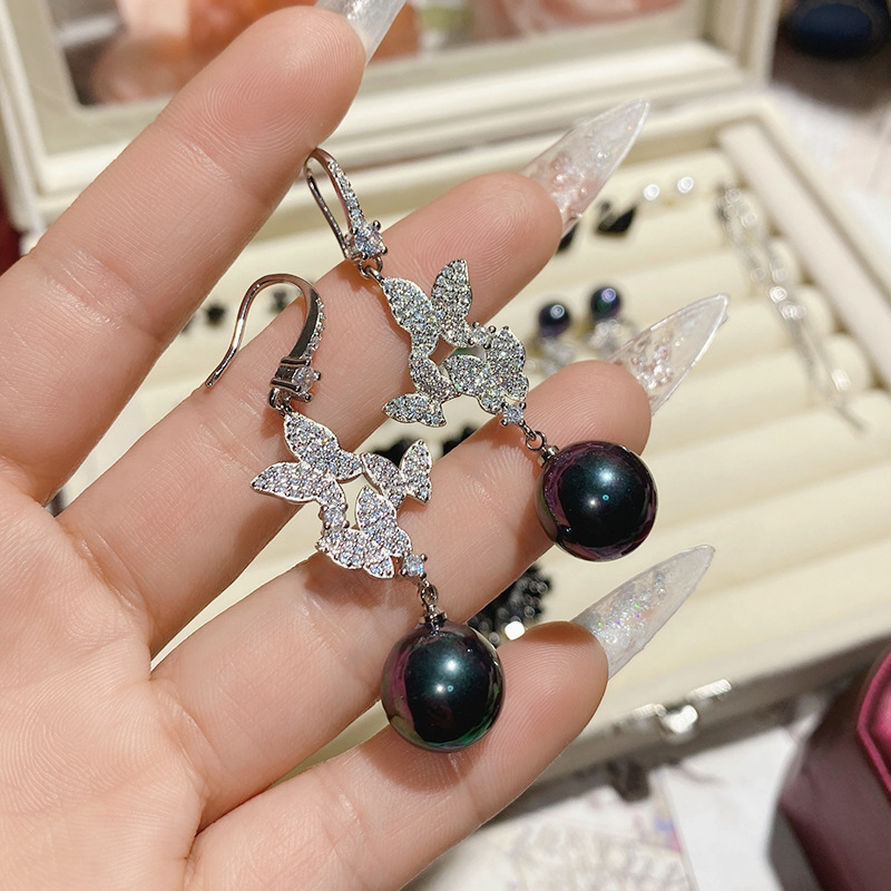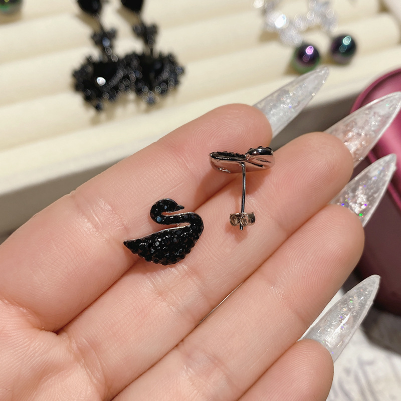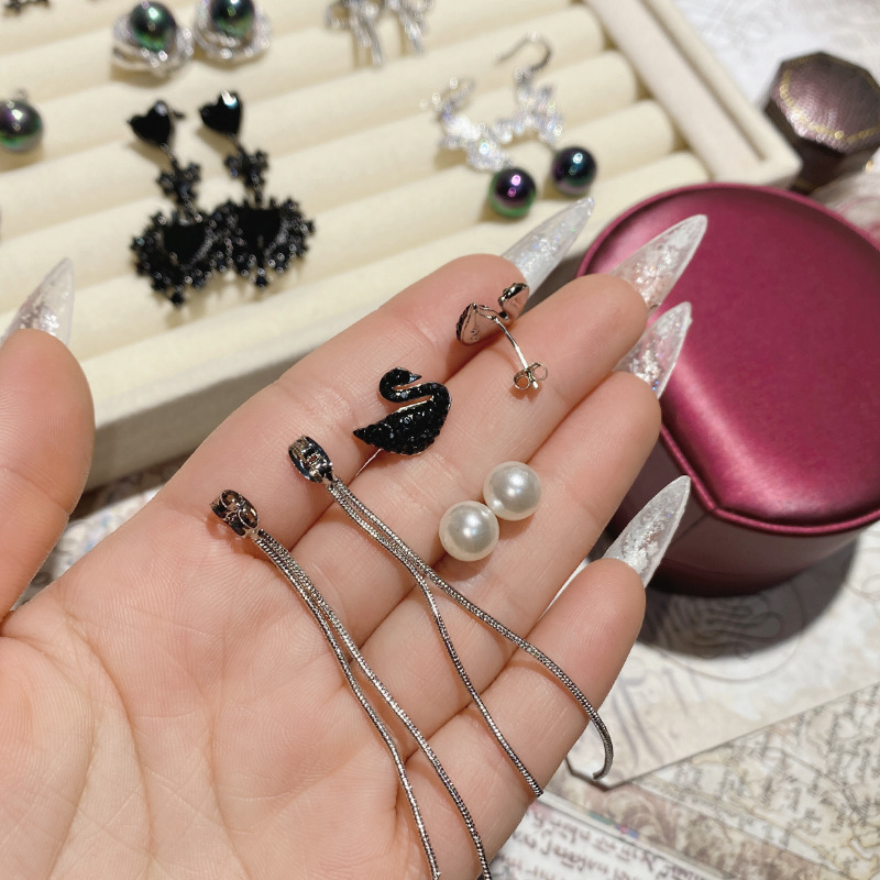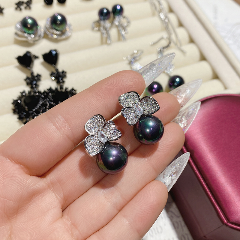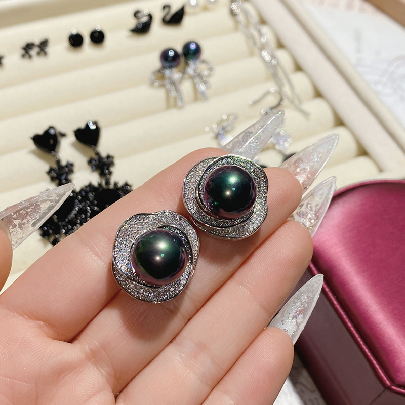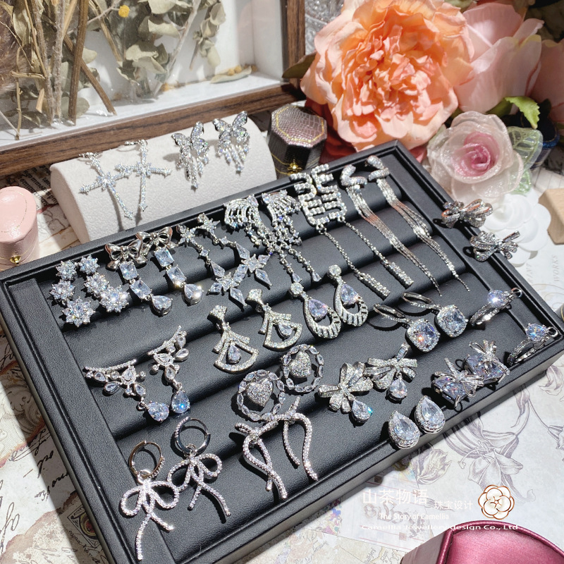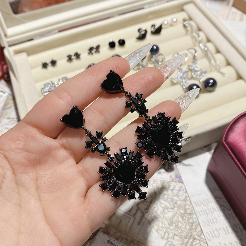 ツバキの軽い豪華な小衆の暗い風はダイヤモンドの愛のイヤリングを入れて黒金のファッションをめっきします。