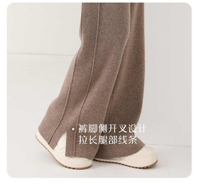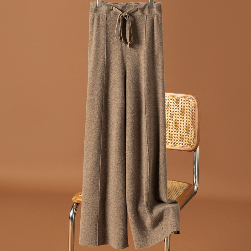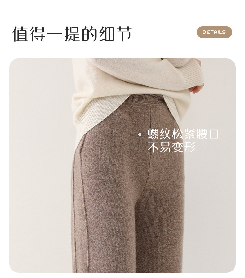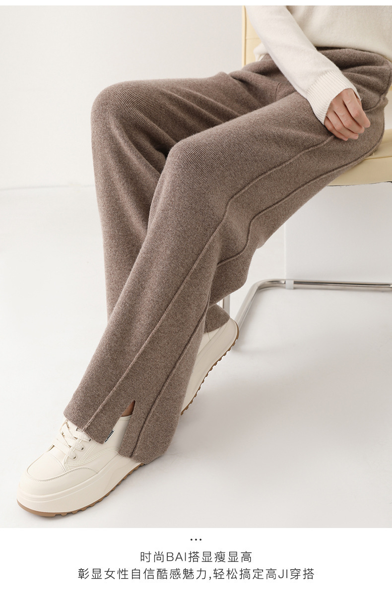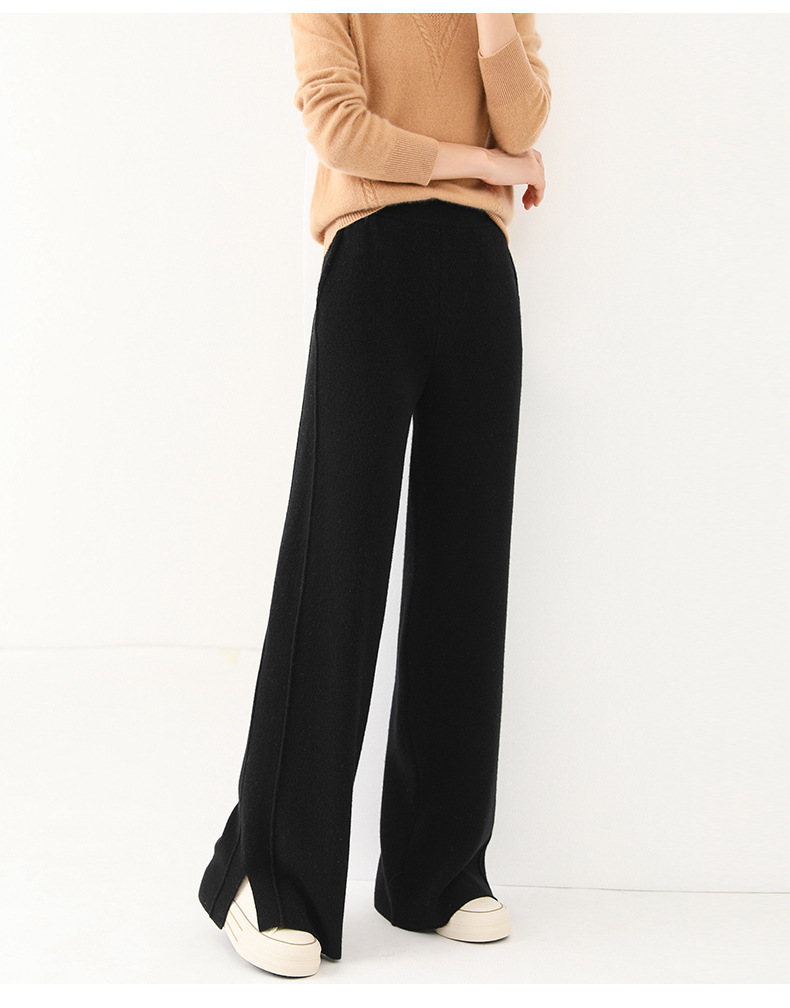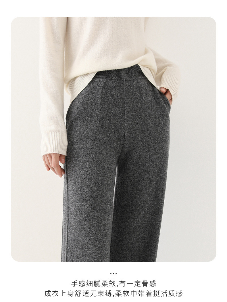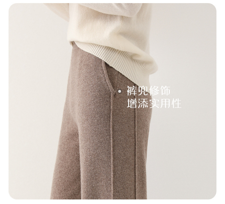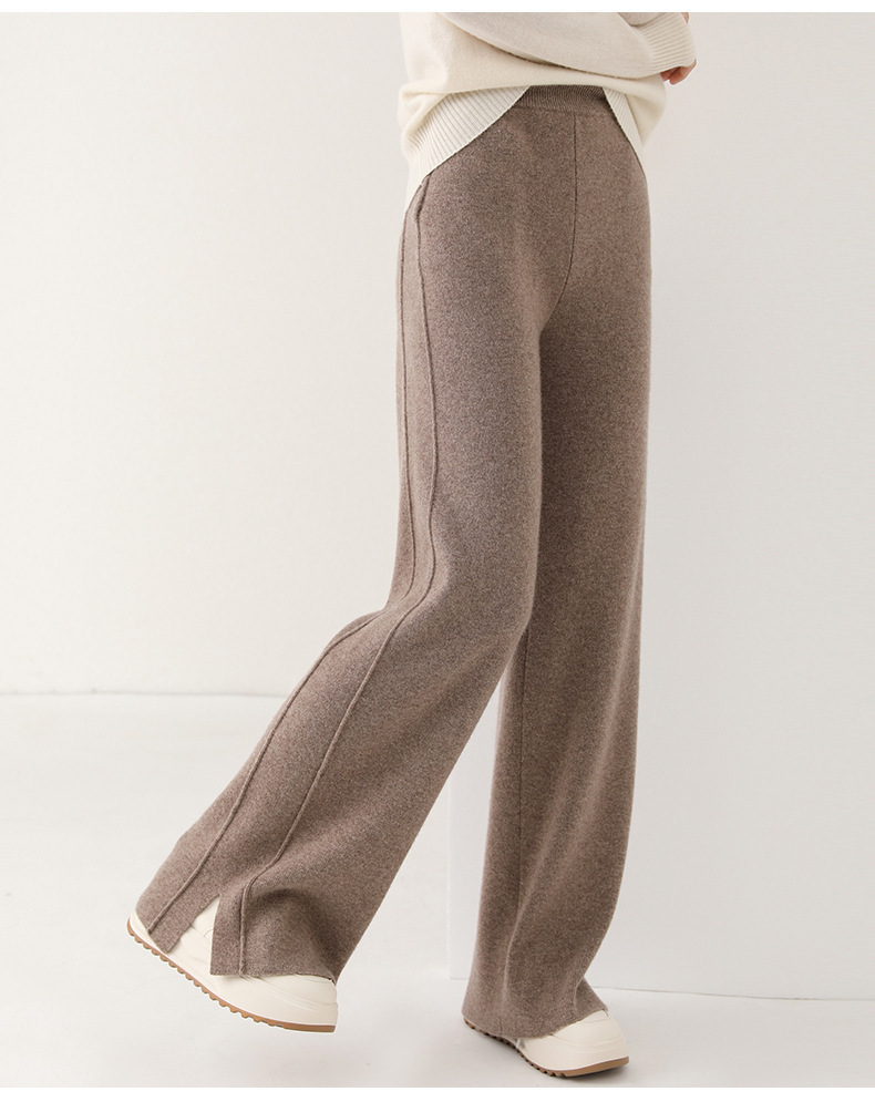 25新しい秋と冬の女性用ピュアウールワイドレッグパンツ、ハイウエスト、ルーズストレートパンツ、カジュアルアウターウェアニットカシミアパンツ