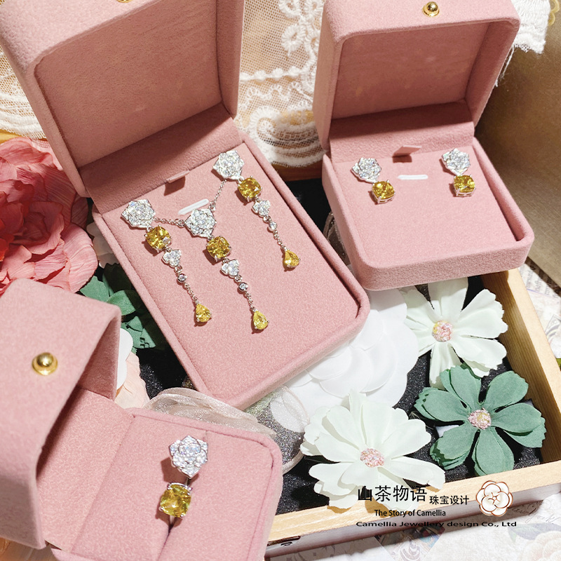 Camelliaキャンディー粉水滴宝石花指輪セイコーメッキ18k蝶ネクタイ5a粉ジルコニウム指輪