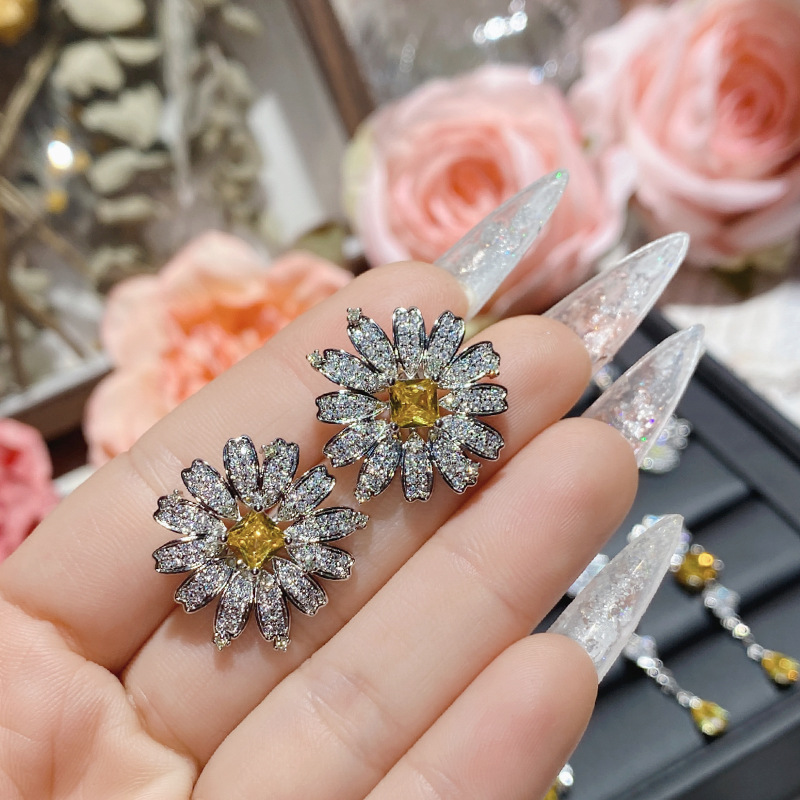 ツバキの欧米の豪華なドリルのデイジーの濃い色の黄色のドリルのシリーズのネックレスは金メッキの韓国版の気質の霊動の鎖をめっきします。