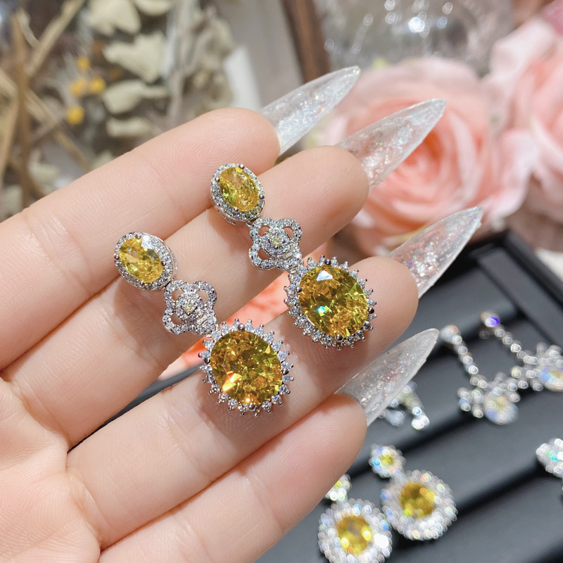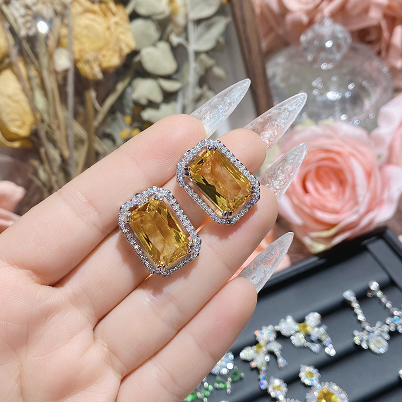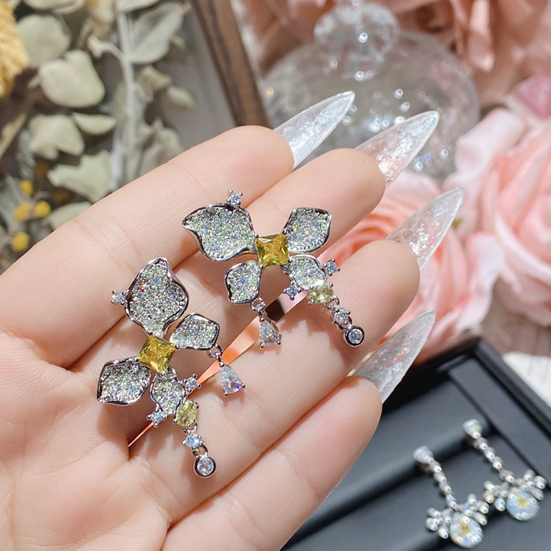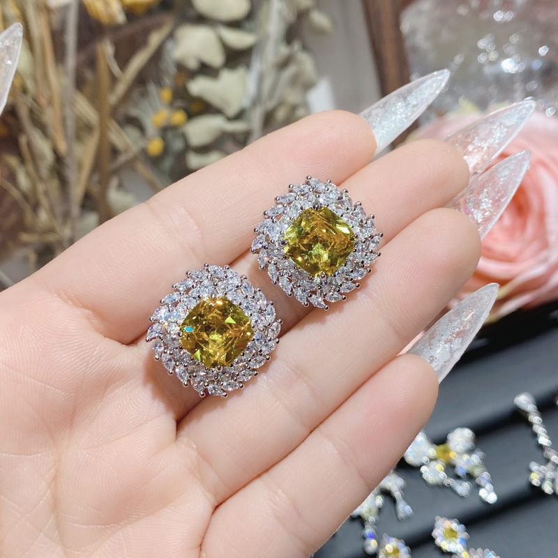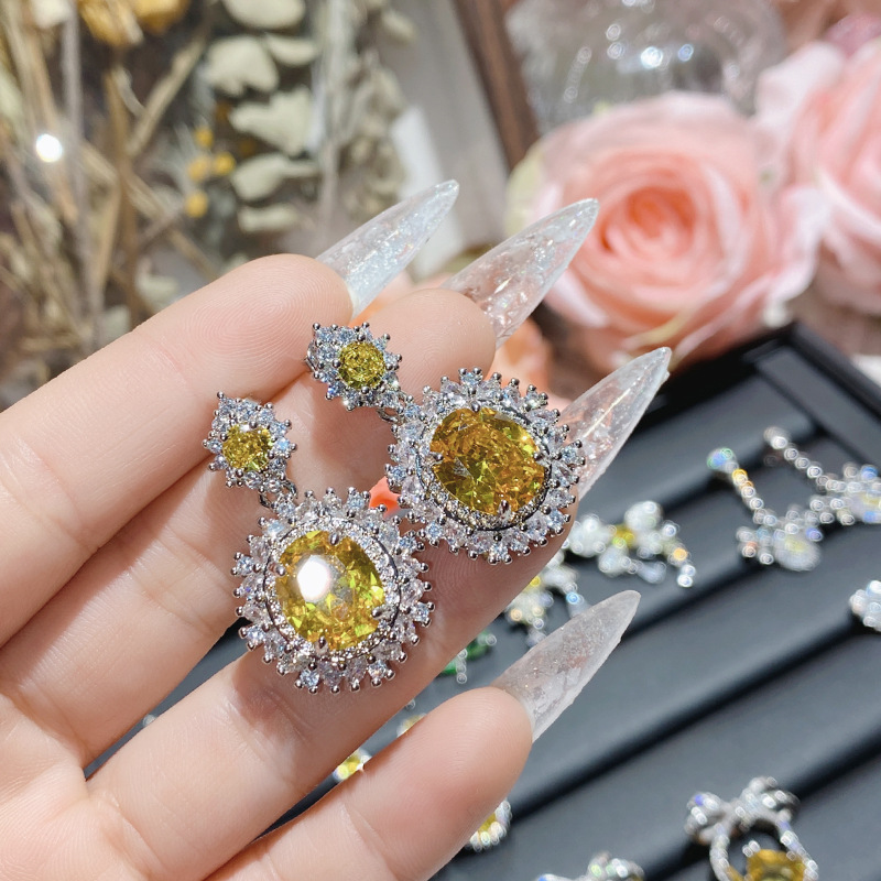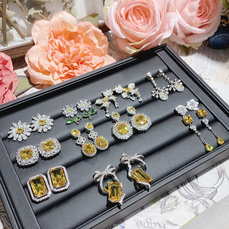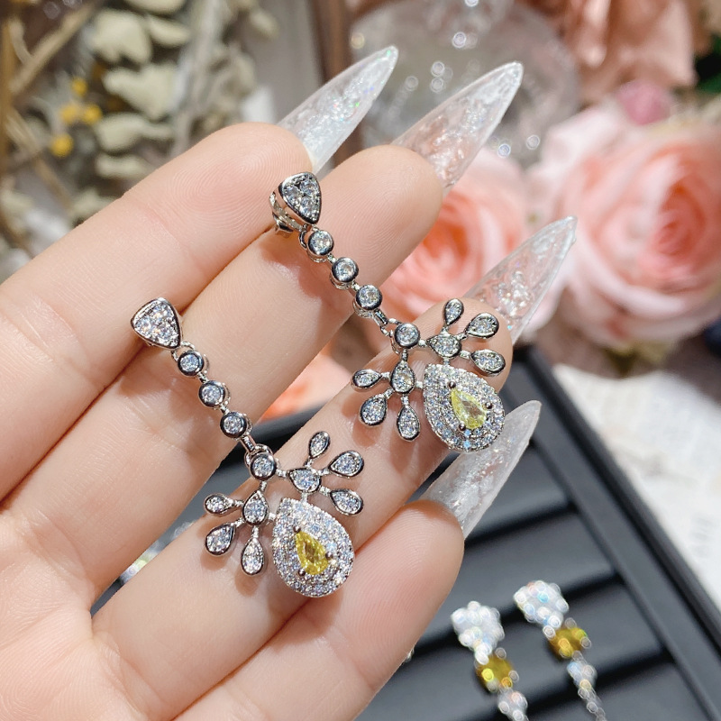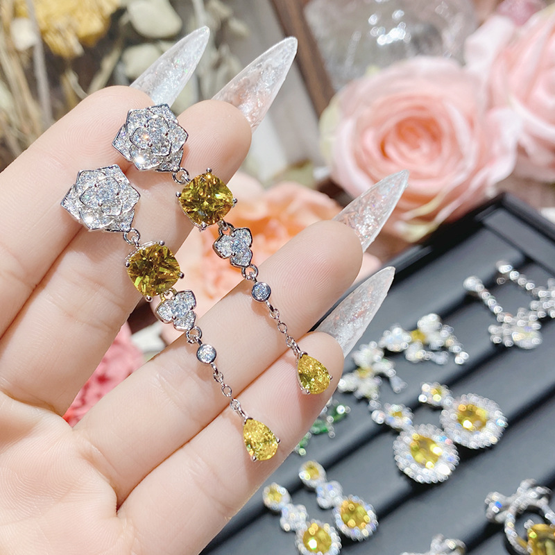 ツバキの新商品の豪華なきらきらと輝く色の宝の黄金のジルコニウムの耳飾りは18kの優雅な貴気の高級な精巧な銀の針のピアスをめっきします。