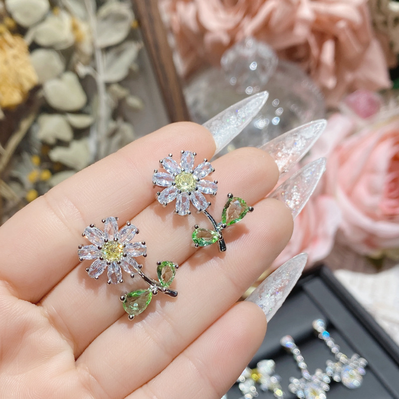 ツバキの軽豪華重工業は祖母の緑の花のイヤリングをまねて金メッキします。