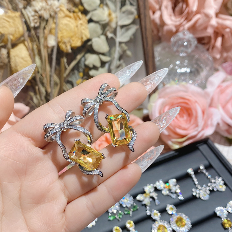 ツバキの湖の光の影の海のサファイアのシリーズのイヤリングの星の河のきらきらと輝くめっきの18kの精巧な愛の蝶結びのピアス