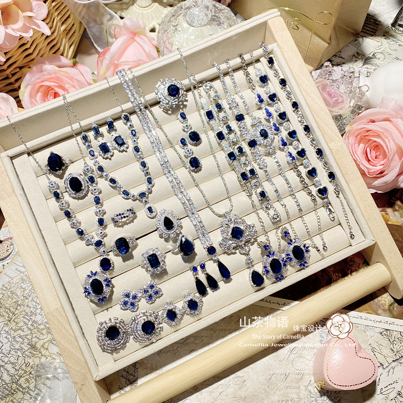 山茶高定ジュエリーデザイン青コランダム彩宝指輪フランス贅沢高級模造天然透輝石指輪