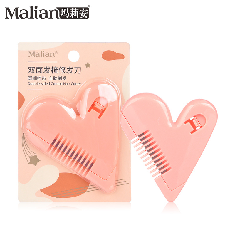 マリアンDIY手作りヘアカットツール、便利なハート型両面鋭利刃ヘアカットコーム、髪のトリミング用 7098