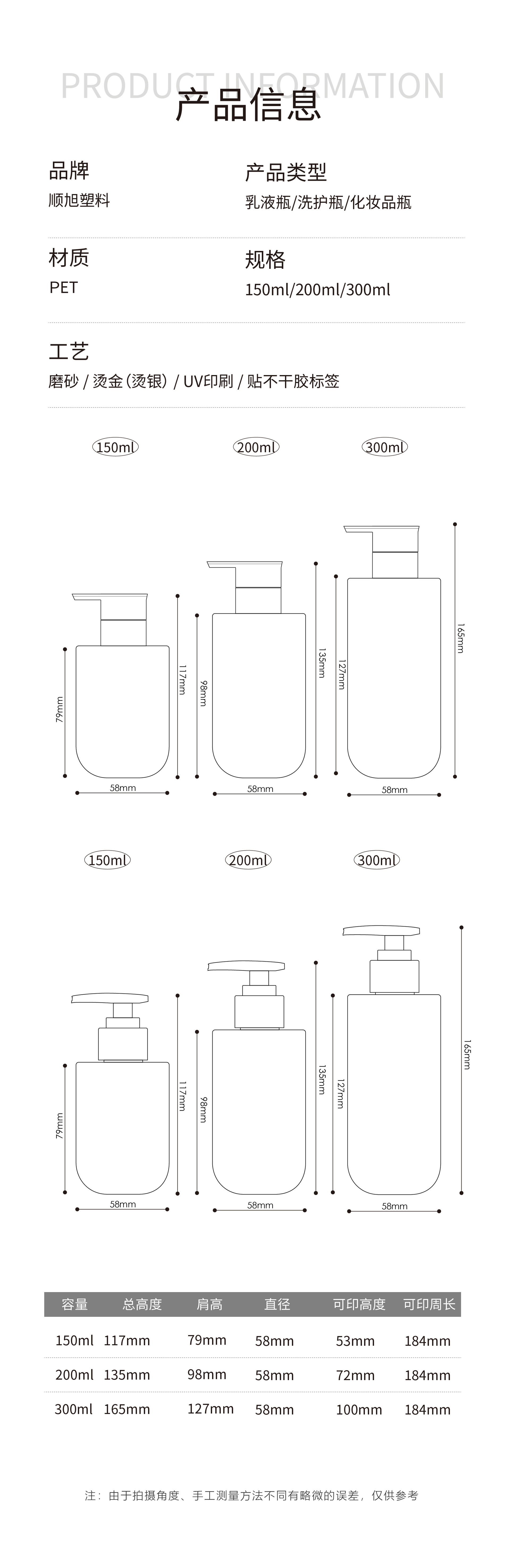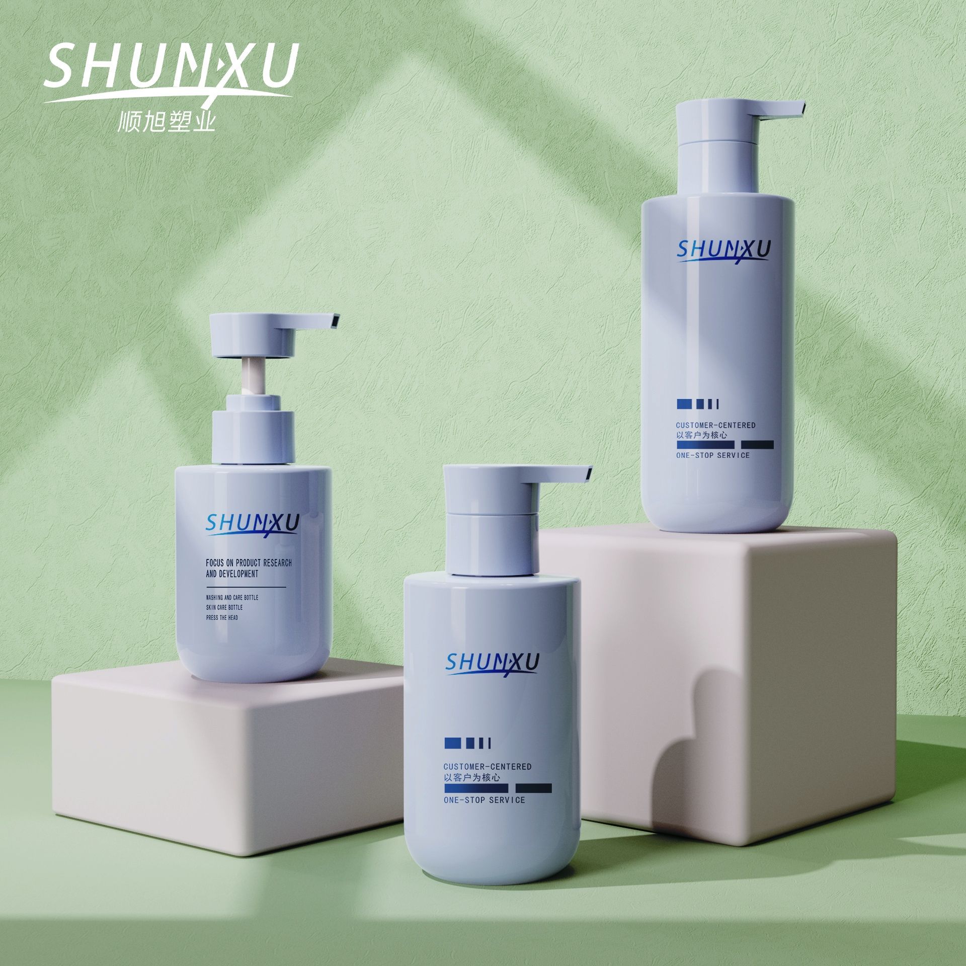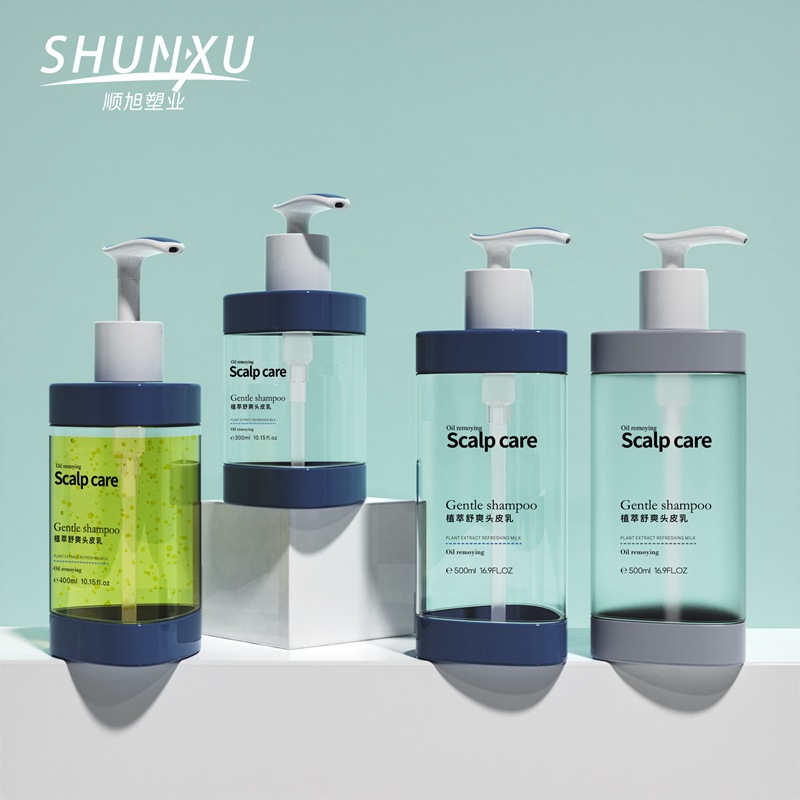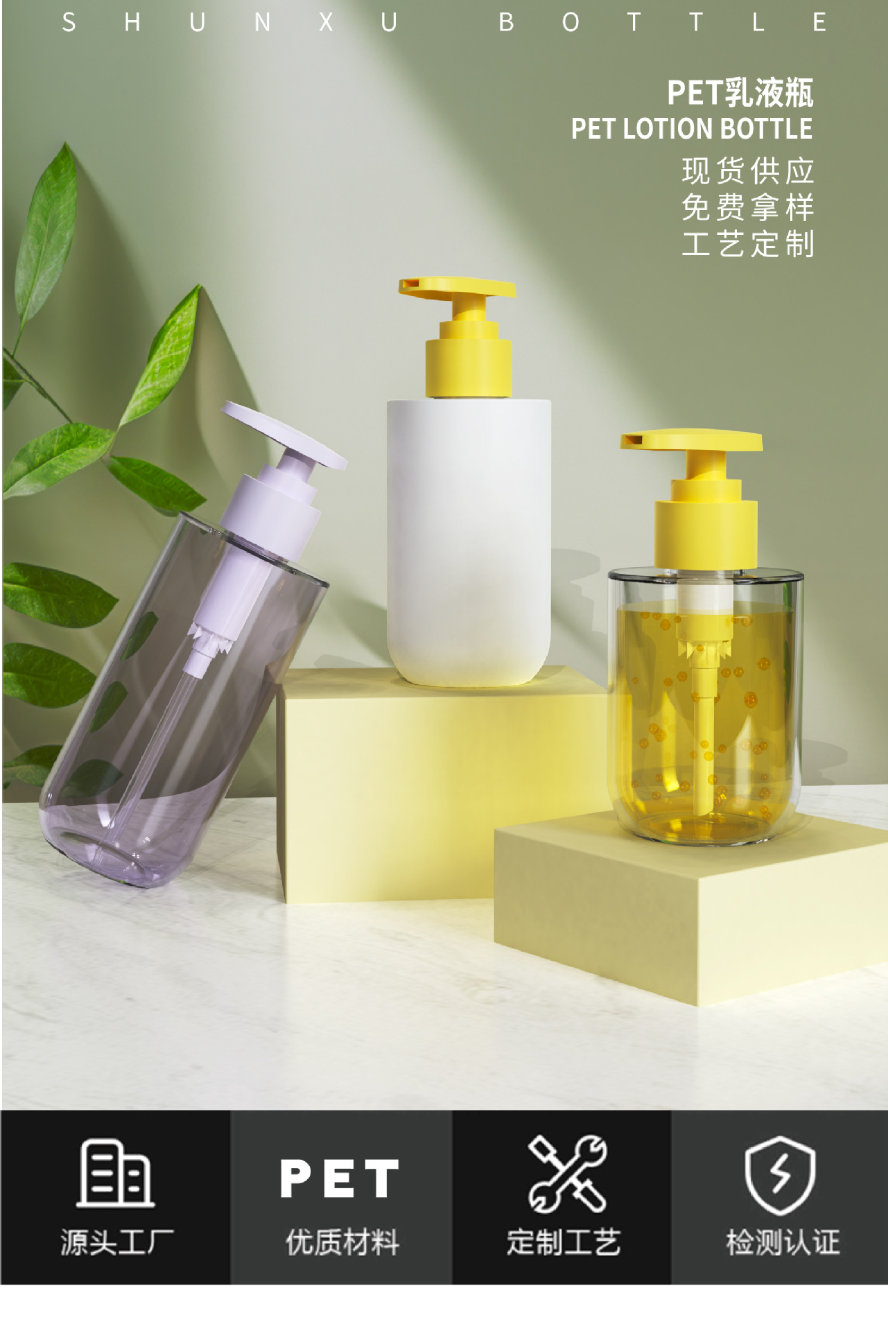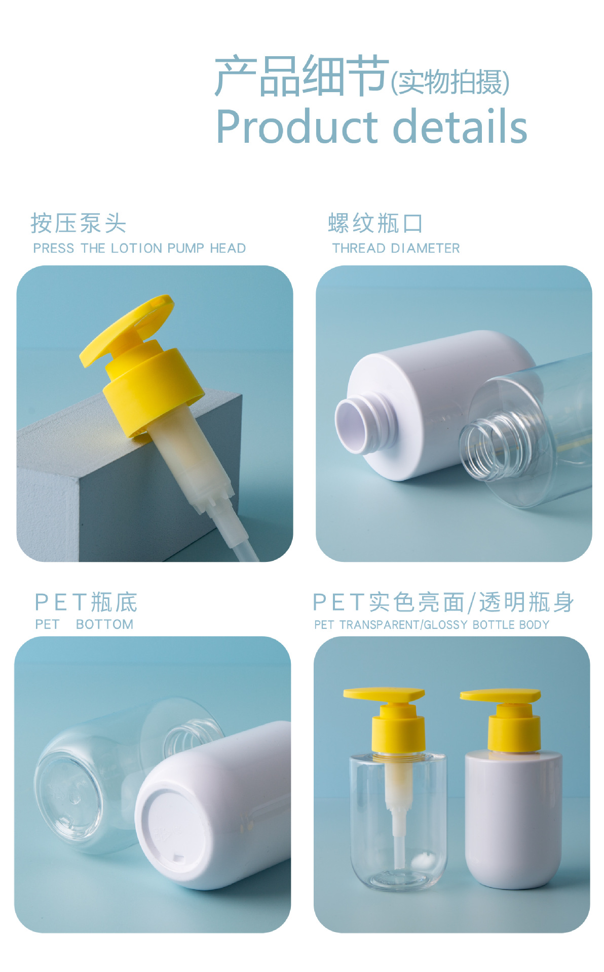 现货300ml圆底平肩透明洗发水瓶500ml按压沐浴露 护肤发素PET瓶子