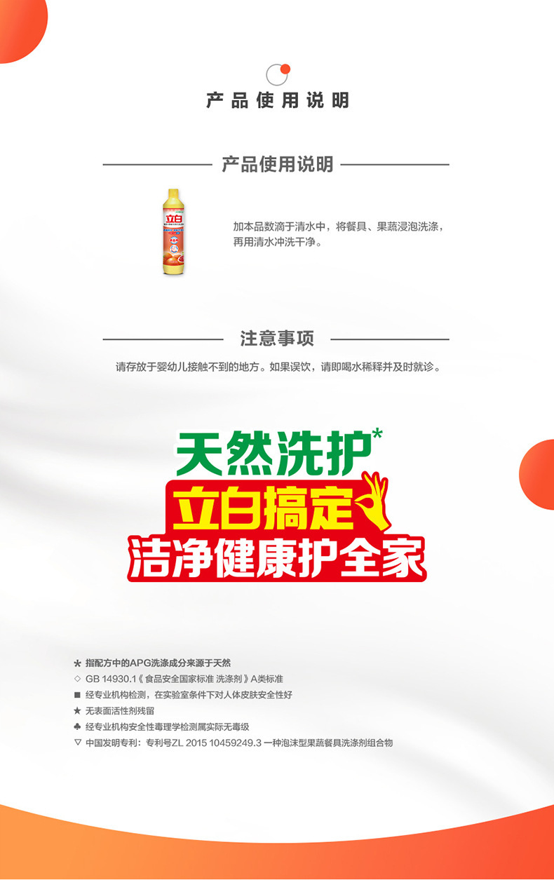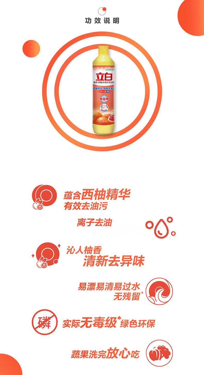 立白西柚小苏打洗洁精批发整箱家用小支去油食品用408g小瓶金桔