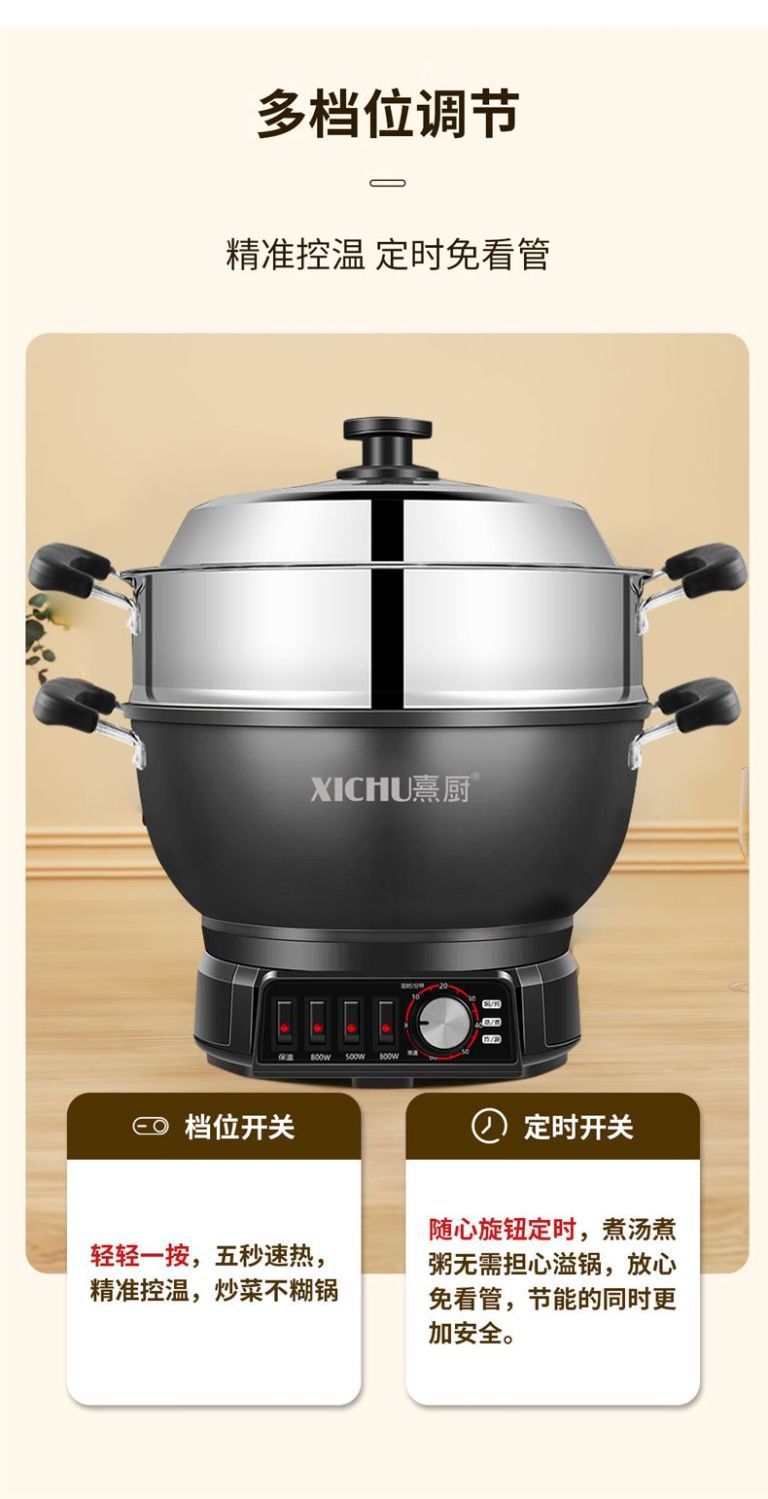 304ステンレス電気炒め鍋多機能家庭用電気炒め鍋蒸煮煮込み一体型鍋定時金電熱鍋