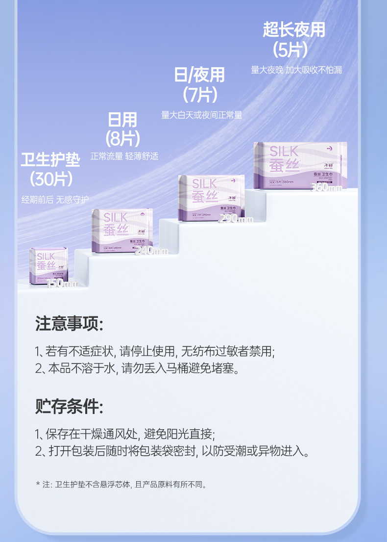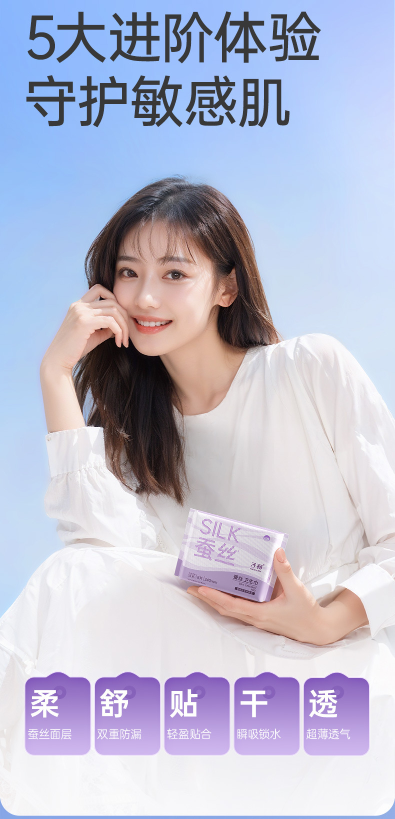 子初蚕丝益生菌卫生巾姨妈巾生理期防侧漏一次性超薄透气姨妈巾