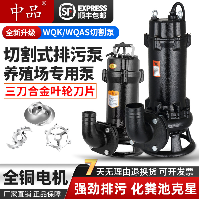 WQ水中汚水ポンプ 切断機能付き汚水ポンプ 220V 家庭用糞尿・泥水ポンプ 380V水中ポンプ 水汲み機