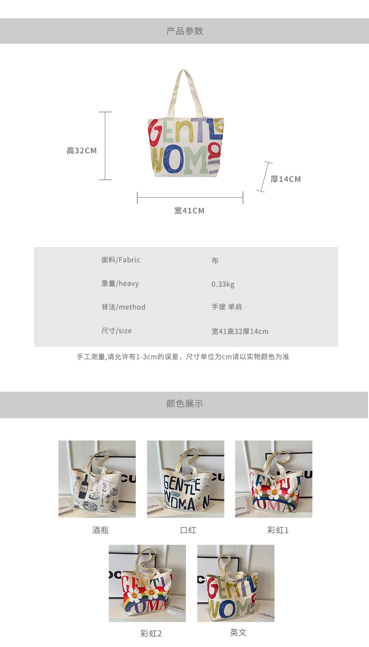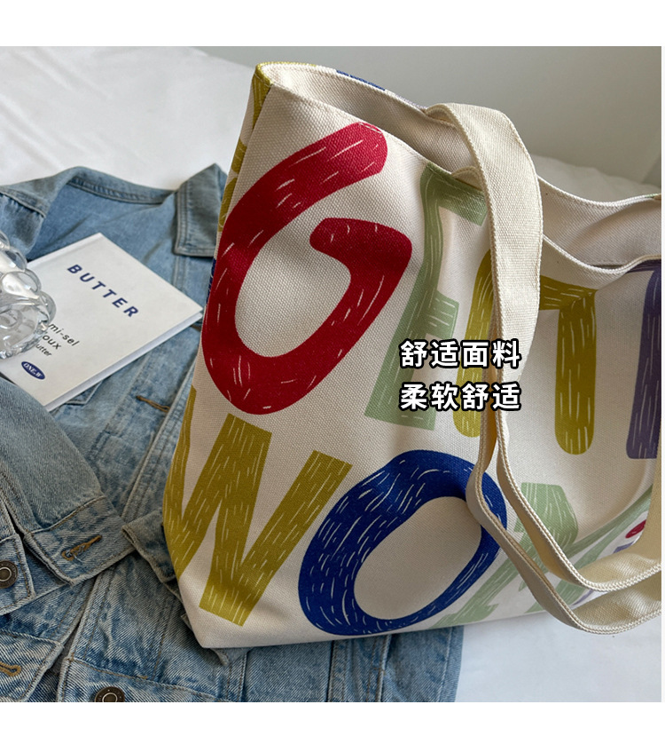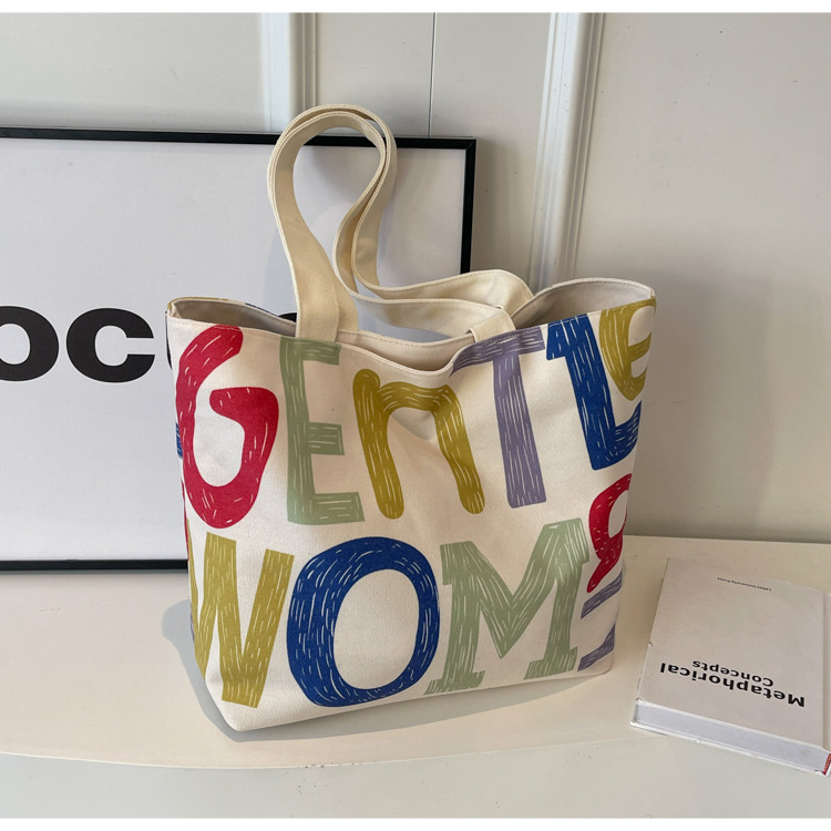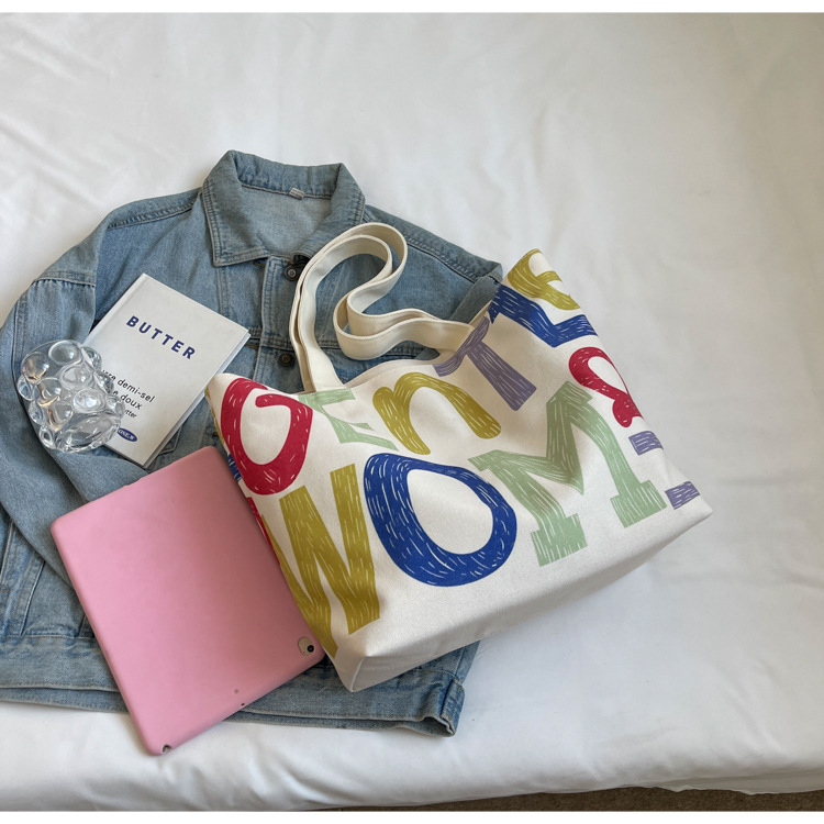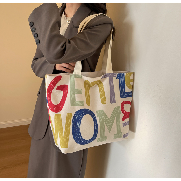 大容量キャンバス女性バッグ2022新型韓国風ファッションシンプルショルダーバッグアルファベットプリント文芸トートバッグ