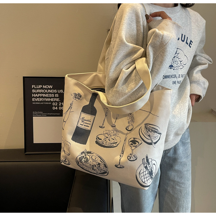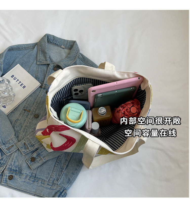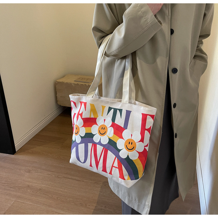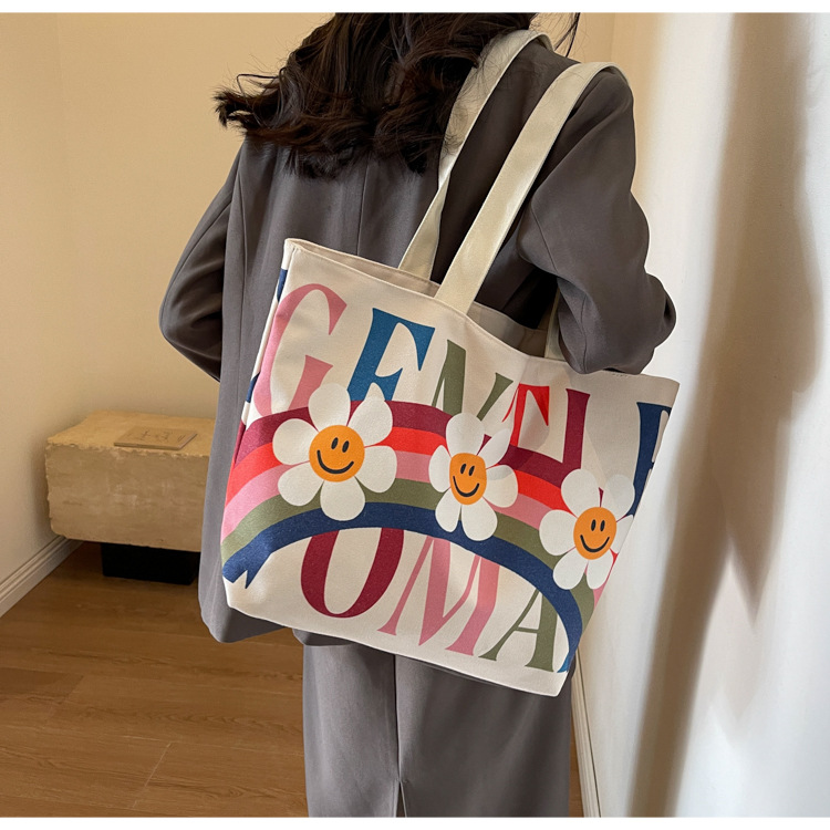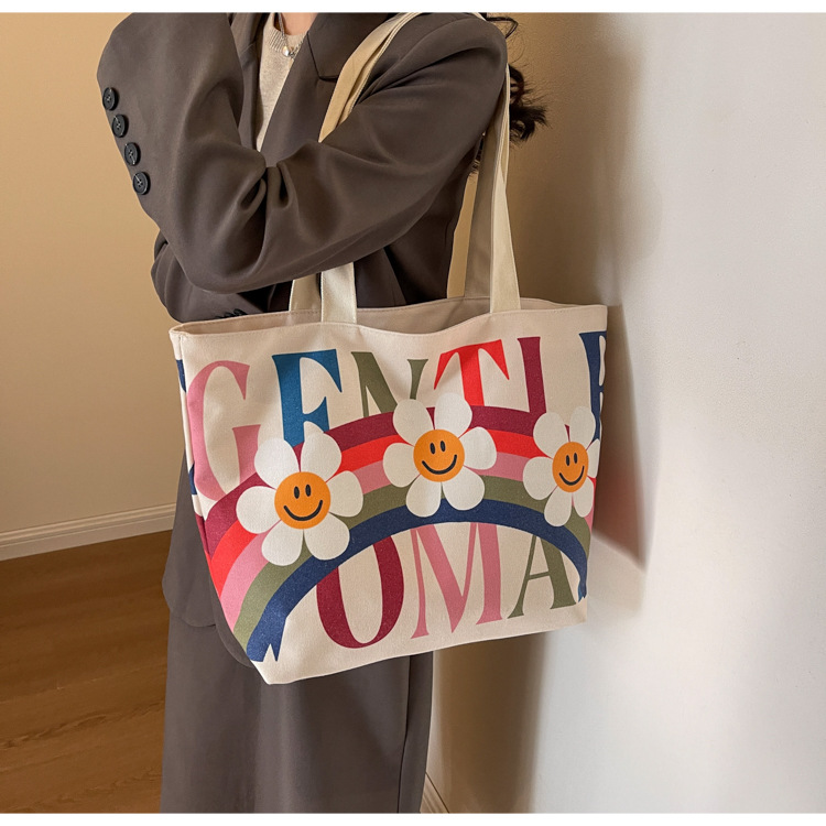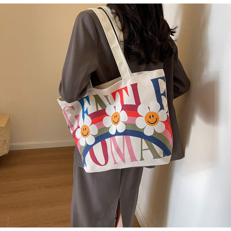 大容量キャンバス女性バッグ2022新型韓国風ファッションシンプルショルダーバッグアルファベットプリント文芸トートバッグ