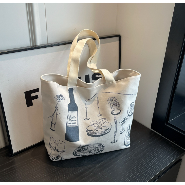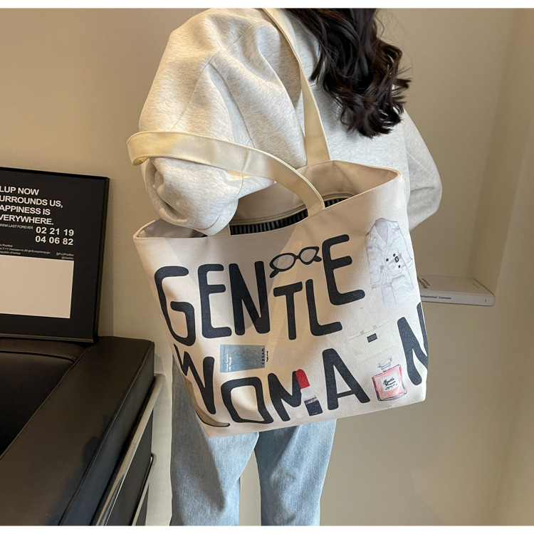 ファッションアルファベットプリントキャンバスバッグシンプルな文芸学生ショルダーバッグ大容量ショッピングバッグ
