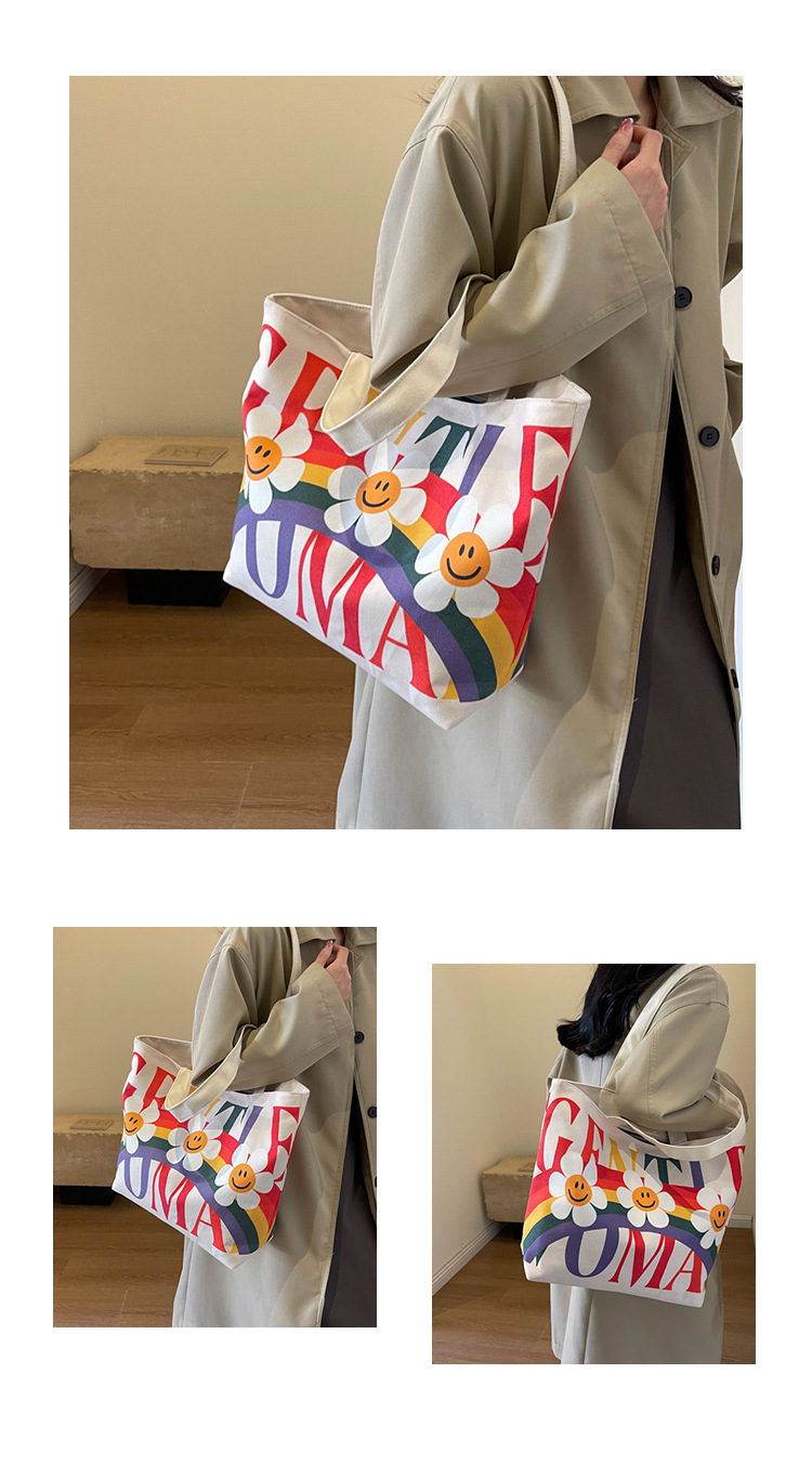 2025新型の可愛いカジュアルなショルダーバッグ韓国版東大門の個性的なプリントストライプの笑顔のトートバッグ