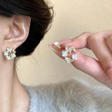 韓国版925銀針の精巧なジルコンの小さい耳の釘の女性のデザイン感の小さい大衆の気質のイヤリングの爆発の爆発の簡単な耳の装飾品