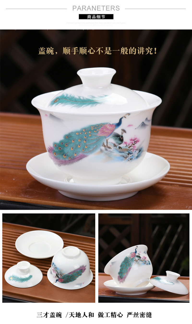 羊脂玉の工夫の茶器のセットの徳化の白磁の陶磁器の蓋の碗のお茶の杯の家庭の客間の軽くて豪華な高級な贈り物の箱