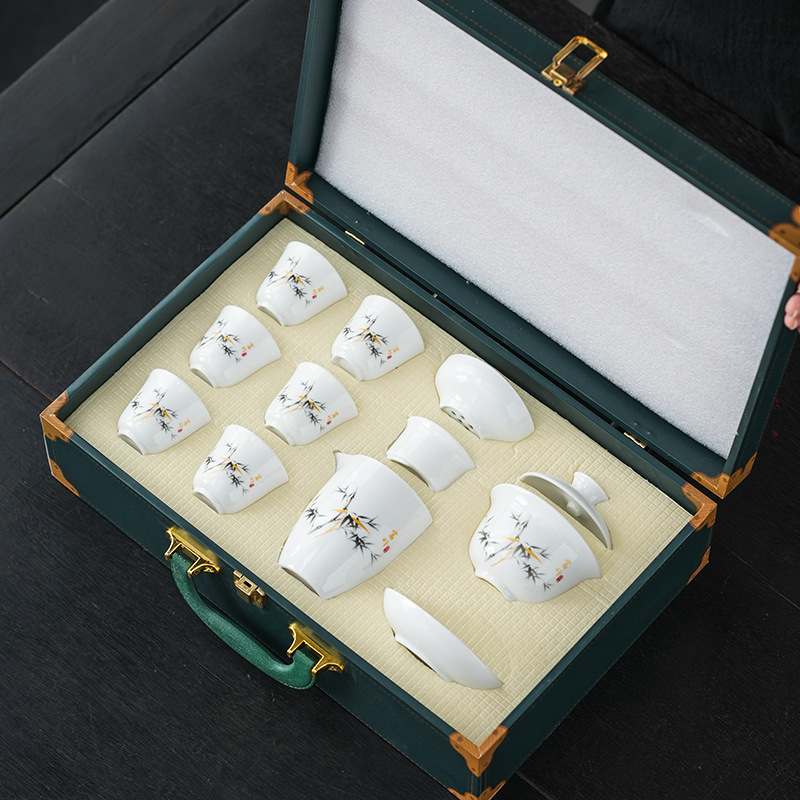 羊脂玉工夫茶器ギフトボックスセット家庭用セット白磁蓋碗高級ビジネスお土産プレゼント