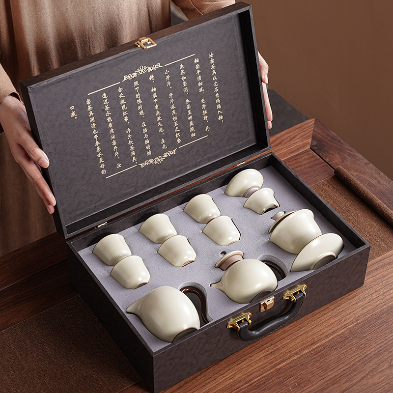 汝窯陶磁器工夫茶器セット礼箱高級軽贅沢家庭用セット客先ビジネスプレゼントマーク