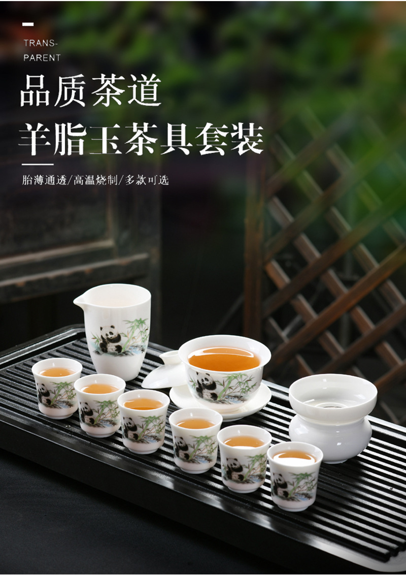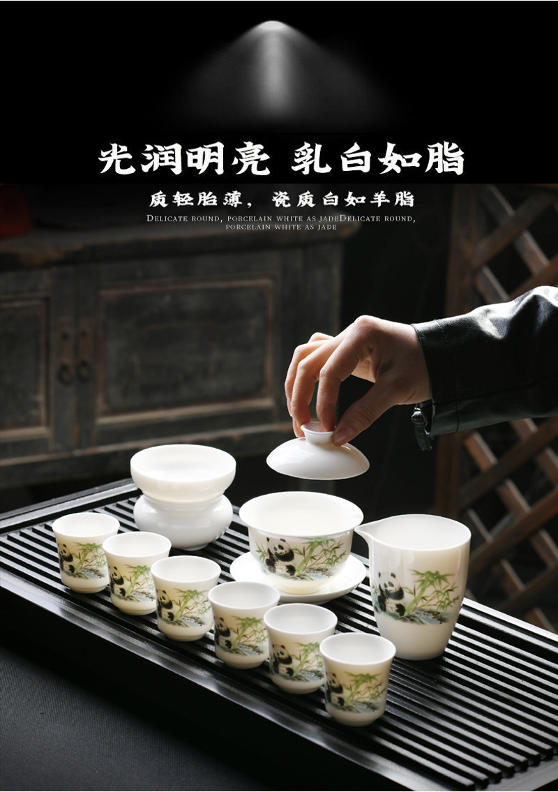 羊脂玉白磁工夫茶器セット家庭用オフィスティーポット