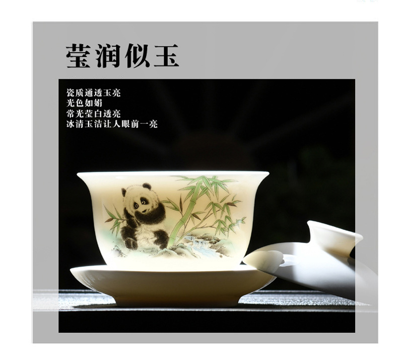 Dehua ハイエンドマトン脂肪翡翠白磁セットカンフーティーセットゴールドカバーボウルセット会社ギフトロゴ顧客用