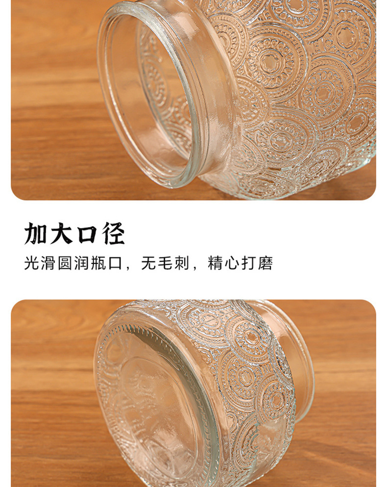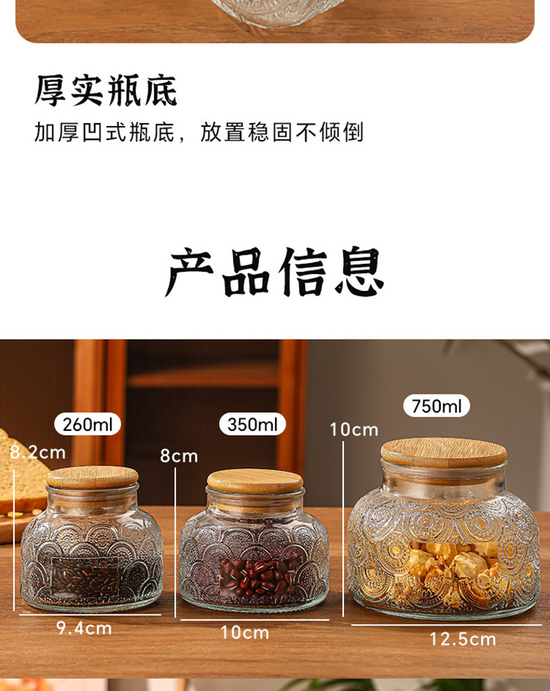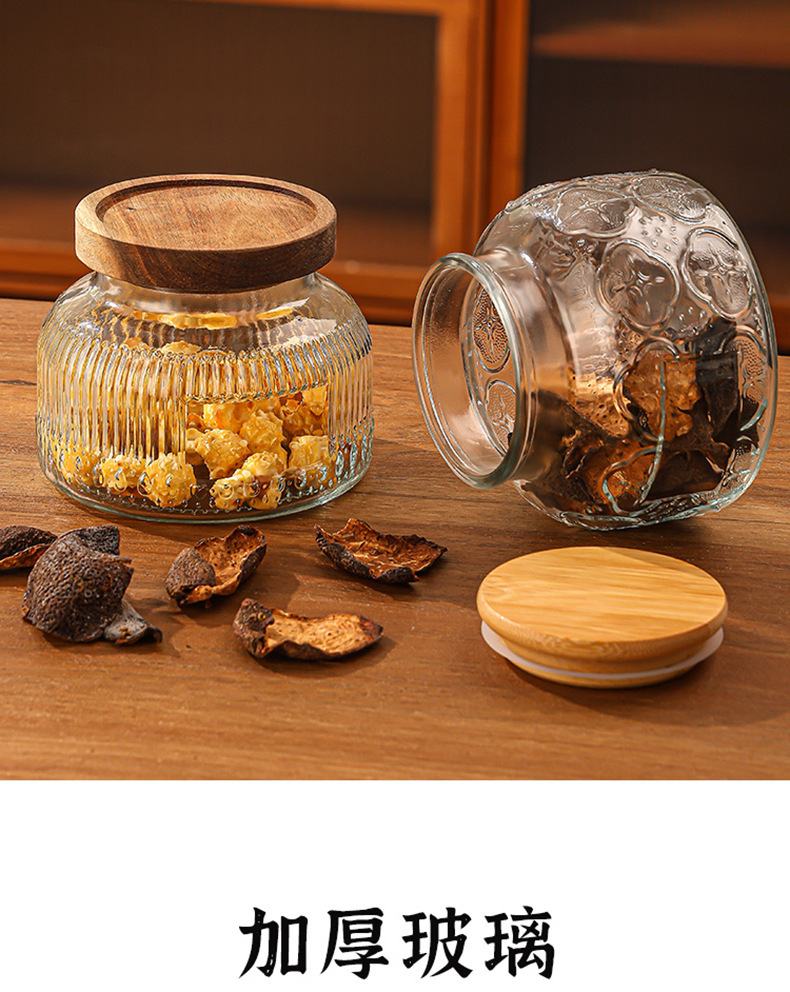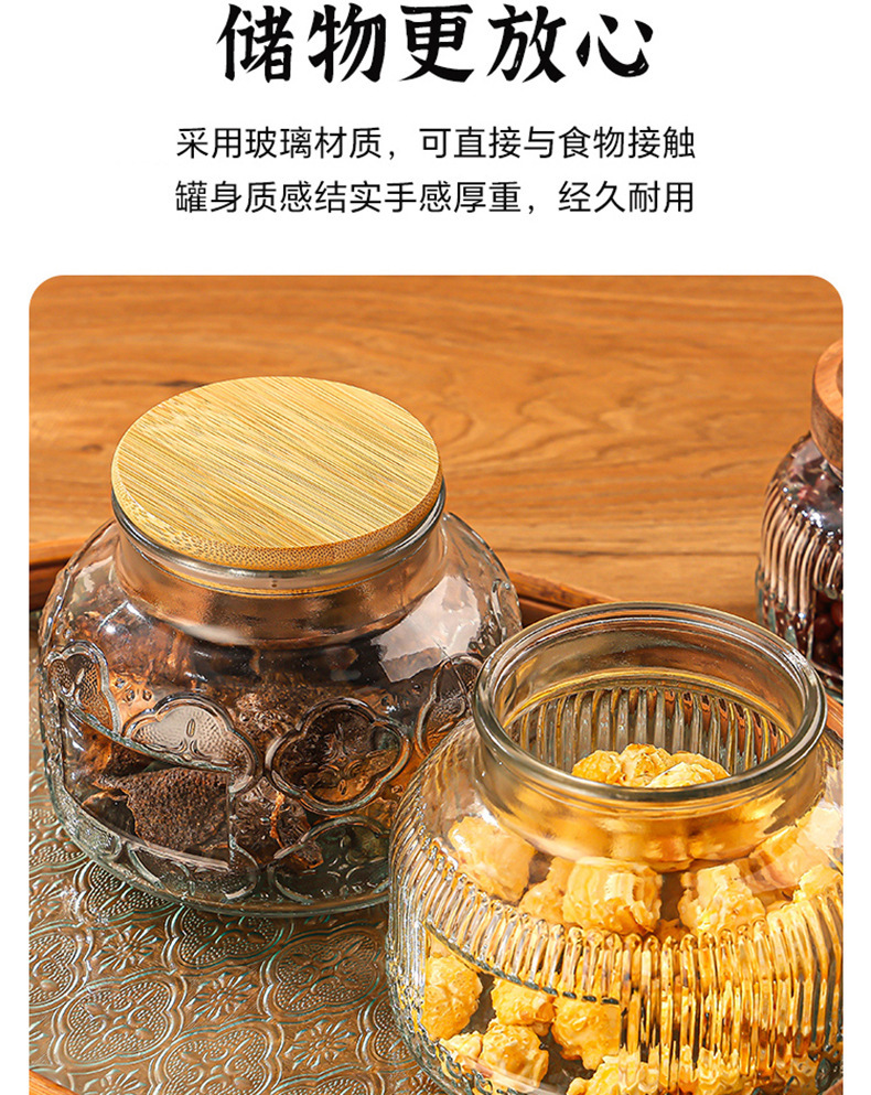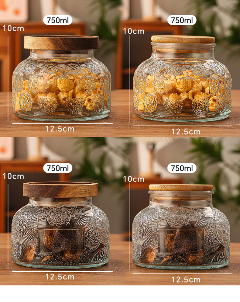 国境を越えた大腹レリーフ貯蔵タンク密封ガラス缶キッチンドライフルーツ雑穀食品収納タンク卸売り透明