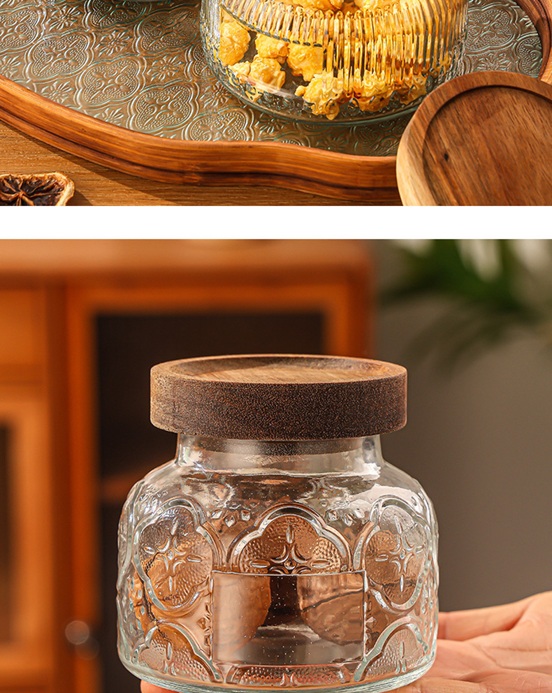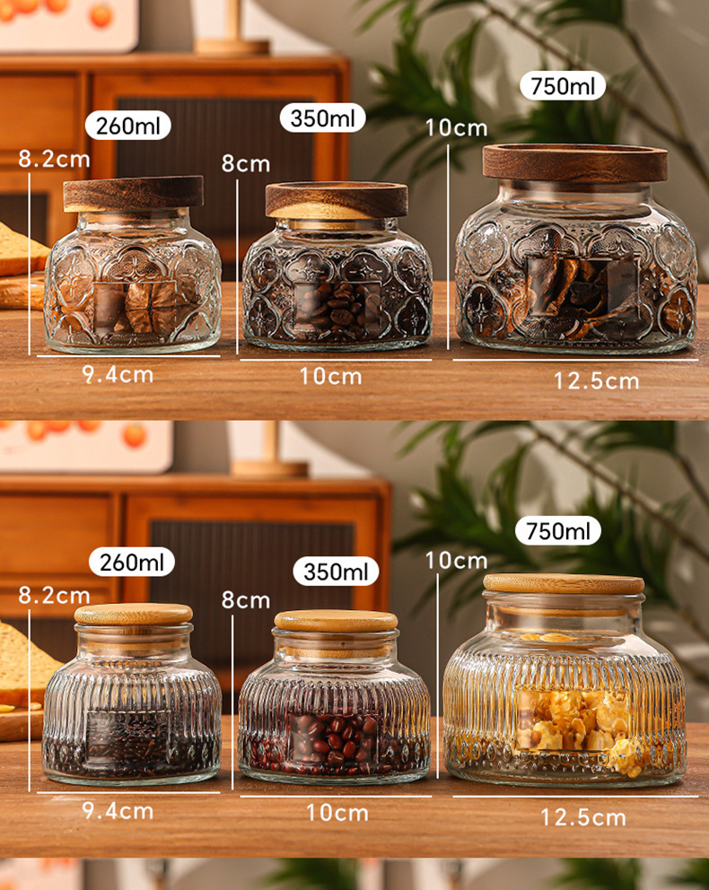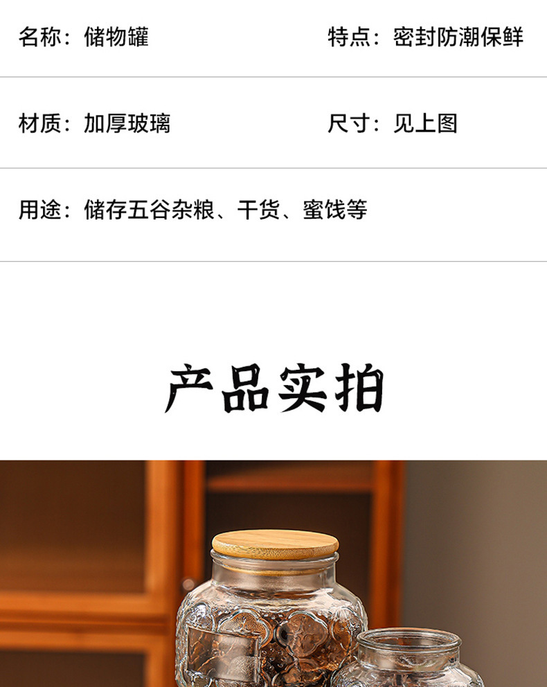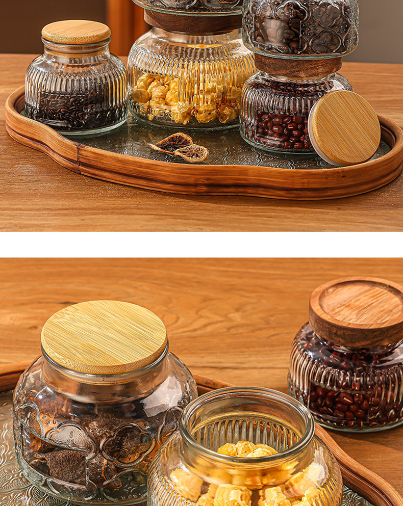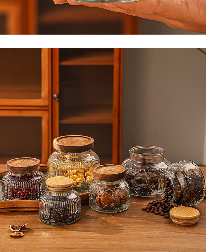 国境を越えた大腹レリーフ貯蔵タンク密封ガラス缶キッチンドライフルーツ雑穀食品収納タンク卸売り透明