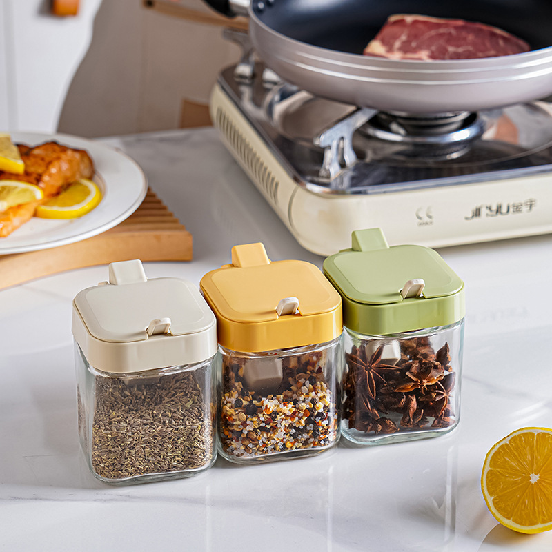 自動開閉調味料瓶 キッチン調味料瓶 家庭用密封調味料ボックス 防湿塩瓶 分割調味料ボトル 漏れ防止