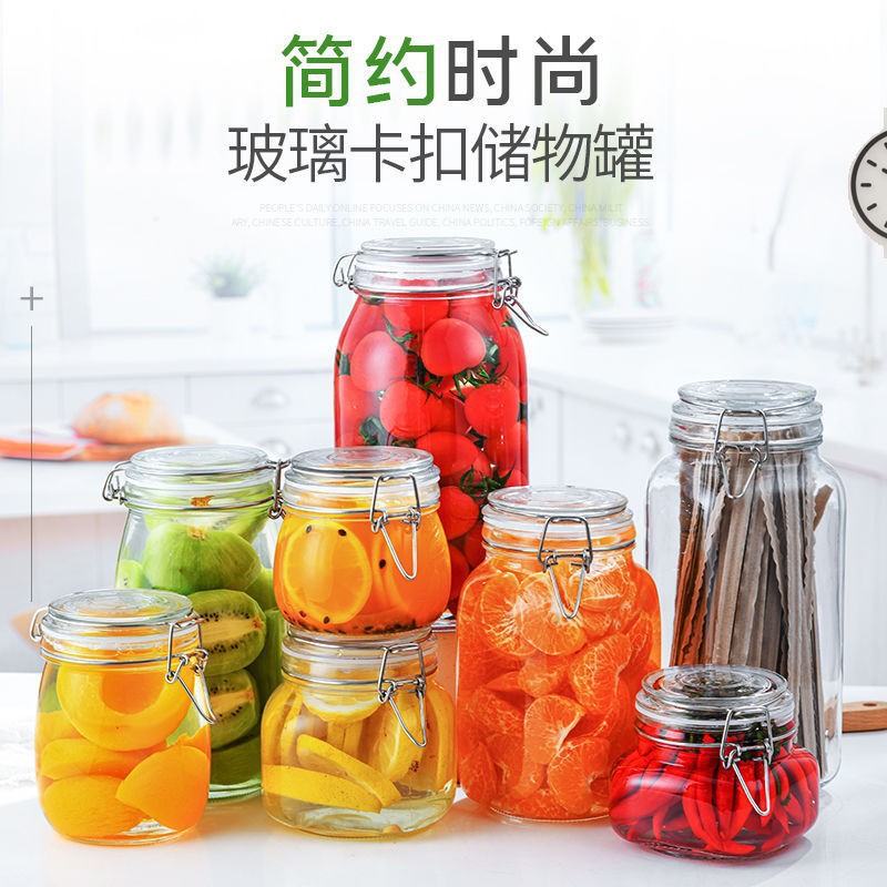 ガラス保存瓶、クリップ式密閉漬物瓶、自家製フルーツ漬物瓶、多様なサイズの卸売ガラス瓶