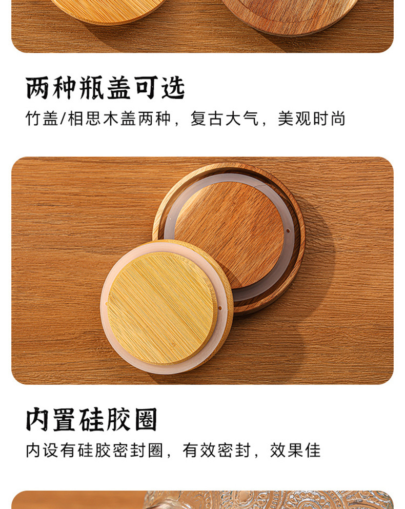 アマゾン120ml竹木蓋調味料瓶4オンス角瓶調味料缶クロスボーダー香料瓶穴付き粉缶卸売り