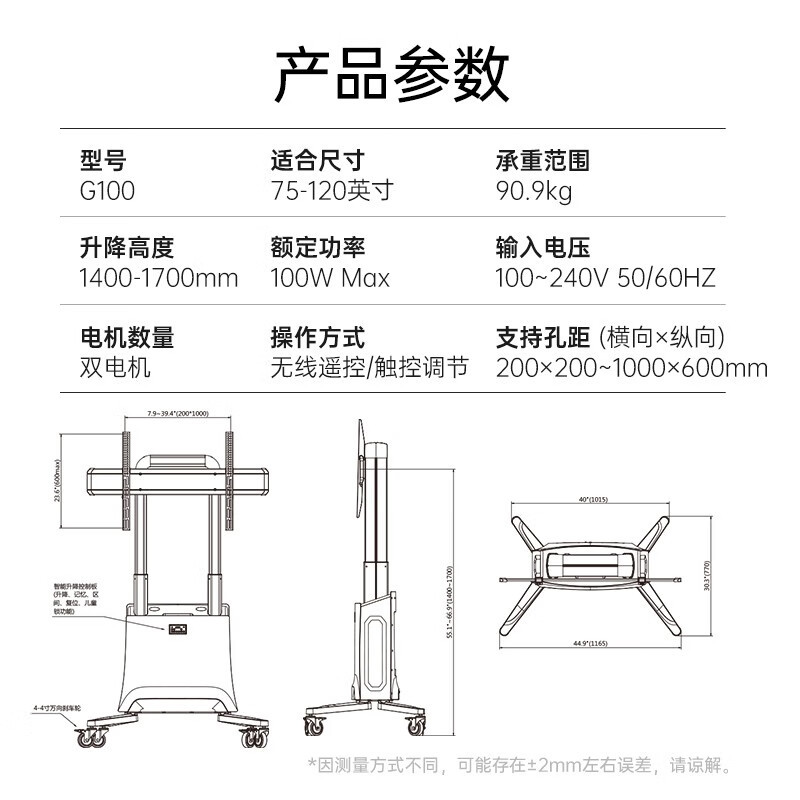 NB G100 75 "-120" 大画面会議フラットテレビ電動昇降移動カートリモコン制御