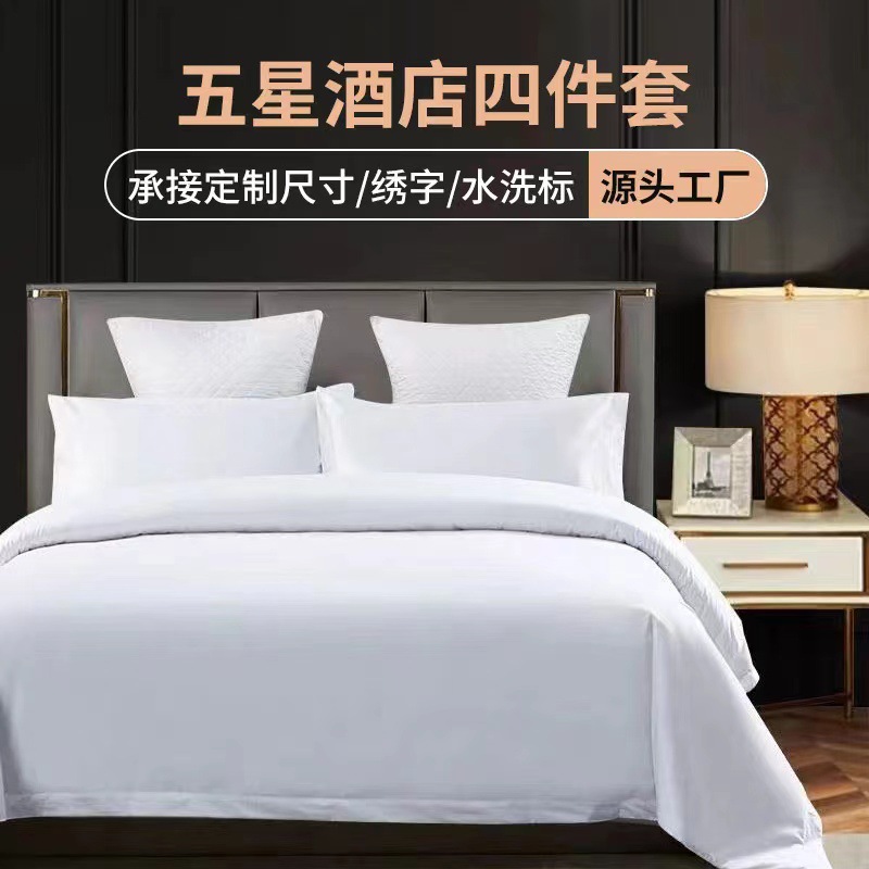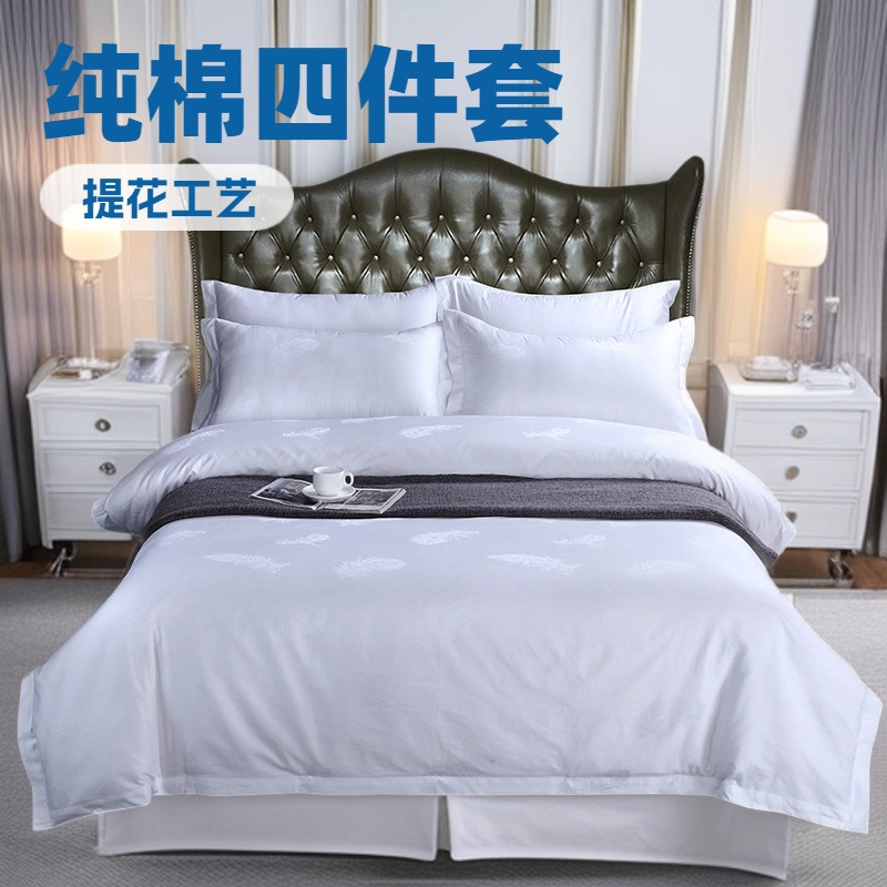 5つ星ホテルホテルベッド用品布草純白シーツ布団カバー4点セット綿ジャカード民宿