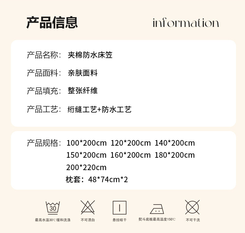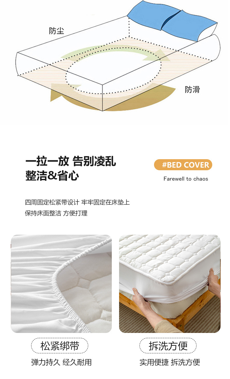 加厚酒店床上垫床笠款夹棉保护垫加深30cm隔脏防滑白色保护罩单件