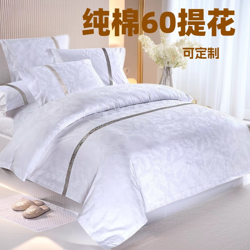 ホテル布草ホテル民宿60本全綿純白ベッド用品三四点セット錦織帯布団カバー枕カバー