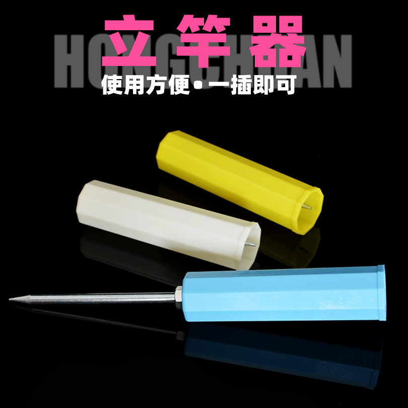 川海竿立竿器は竿を投げて桶の簡易立竿器を挿します。