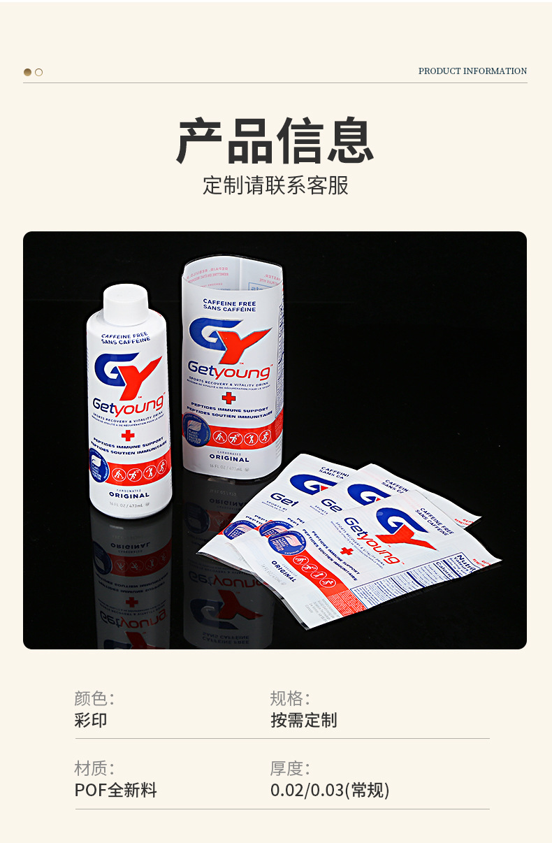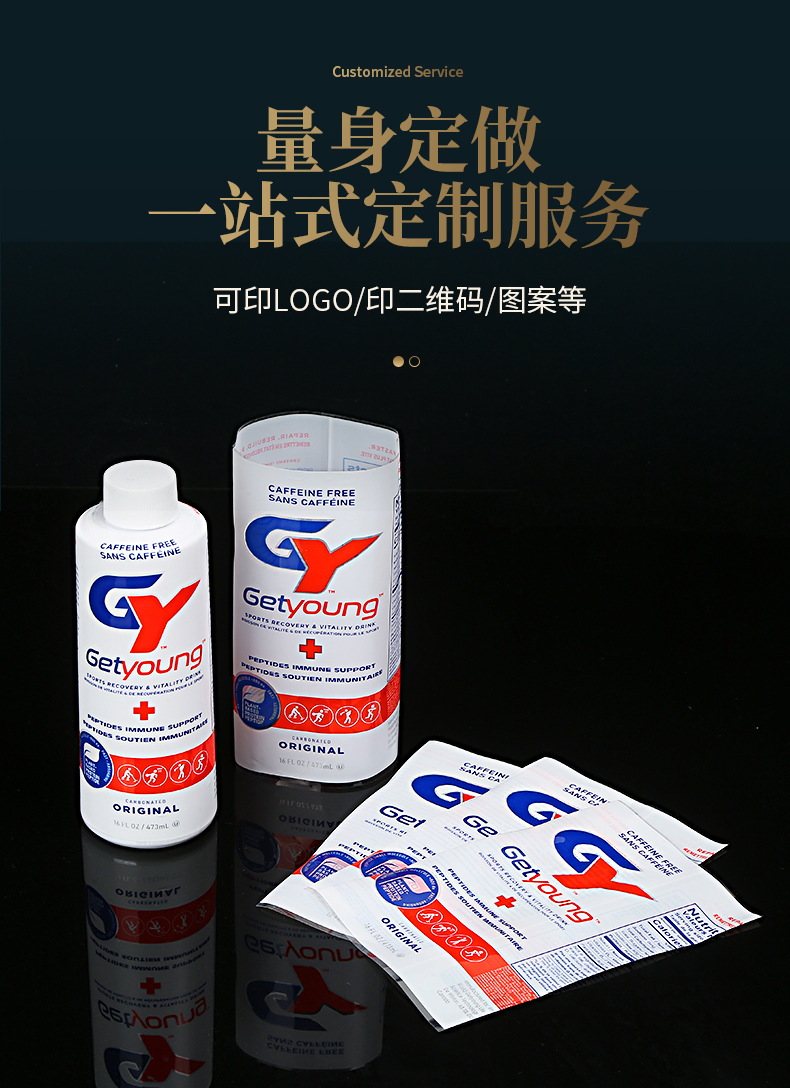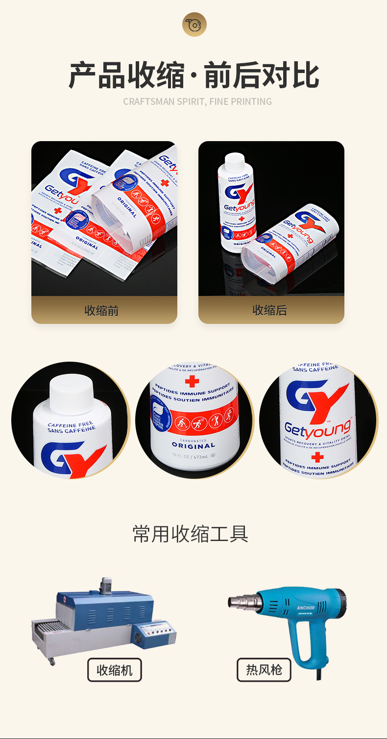 Pvc熱収縮フィルムカスタム飲料酒瓶缶シールラベルフィルムpet食品包装フィルムカスタムロゴ