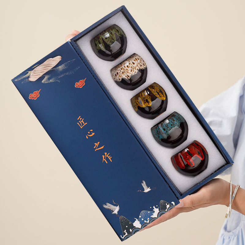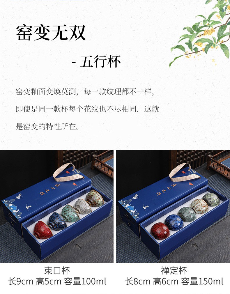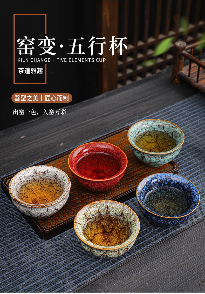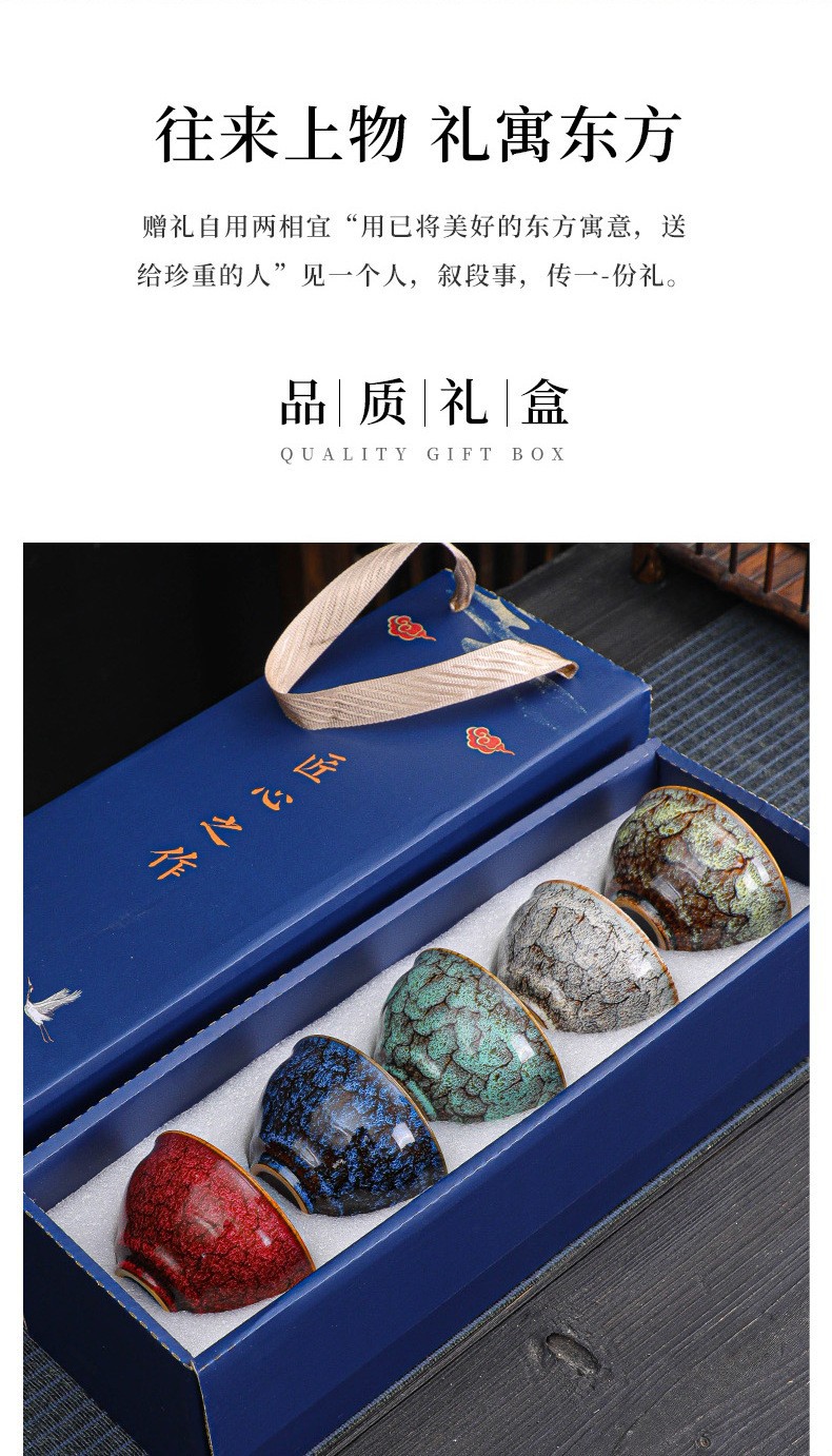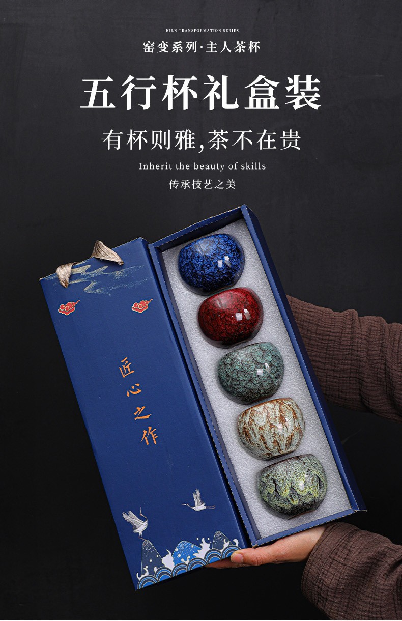 窑变五行杯茶盏主人杯陶瓷功夫茶杯套装商务礼品随手礼礼盒装送礼