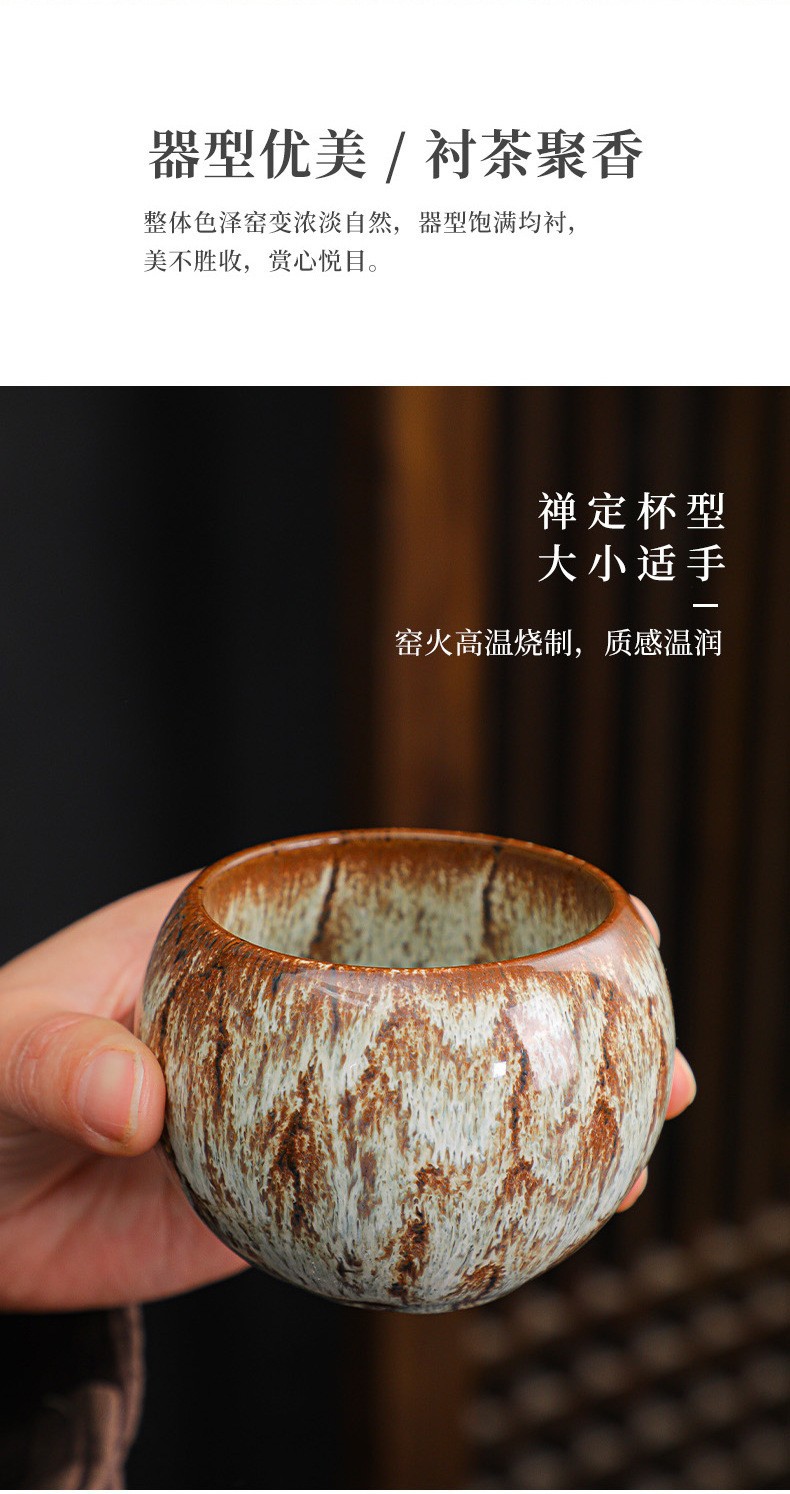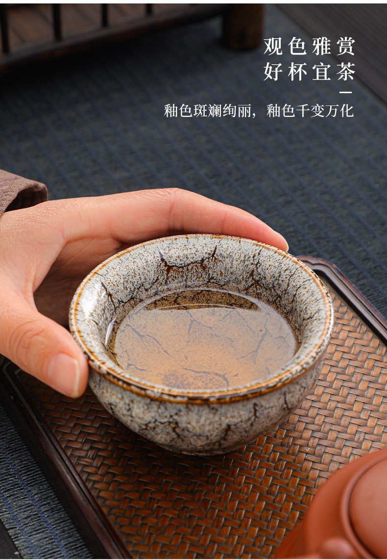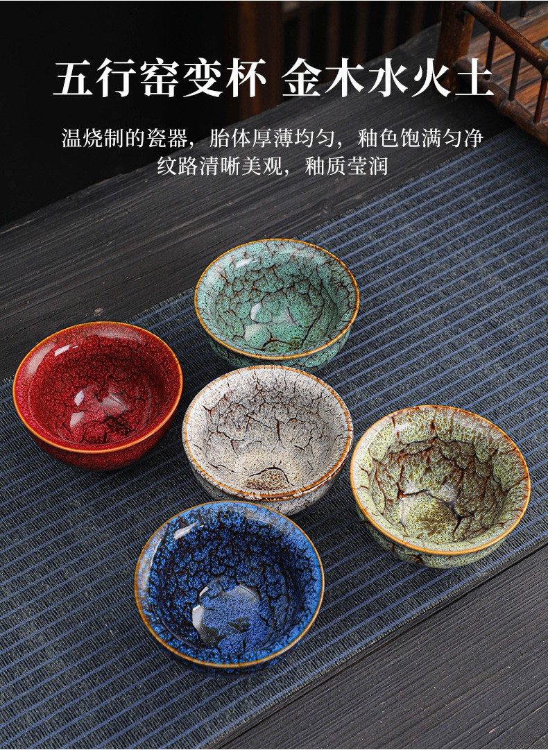 窑变五行杯陶瓷主人杯品茗杯子茶具茶杯套装天目釉建盏冰裂龙蛋杯