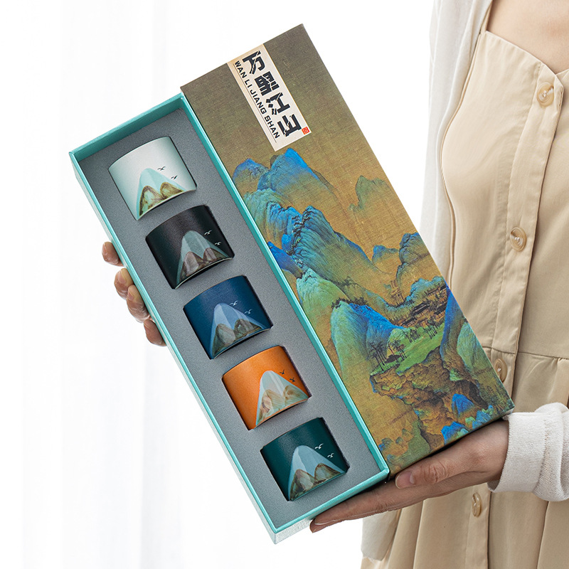 創意的な遠山のお茶の杯の端午の贈り物の礼箱の高級な1杯の陶磁器の茶碗の手描きのお茶の主人の杯の贈り物