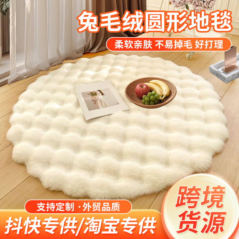 跨境奶油风泡泡绒圆形客厅地毯毛绒家用沙发加厚卧室床边地毯地垫